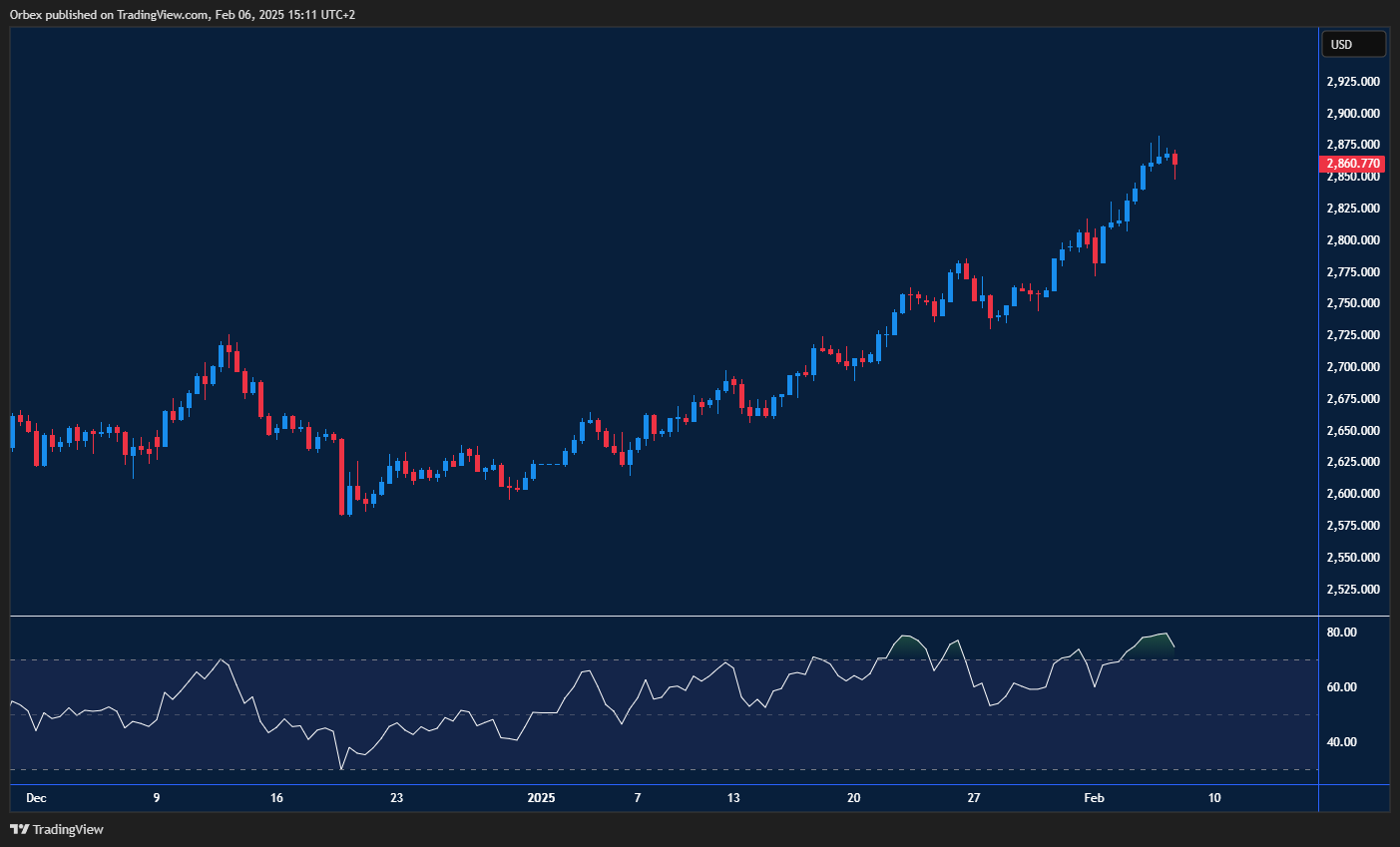 لم تؤثر بيانات الوظائف الأمريكية بشكل كبير على ثقة المستثمرين في استمرار صعود الذهب، حيث لا يزال المعدن الأصفر يستفيد من المخاوف المرتبطة بالحروب التجارية العالمية، خاصة بعد أن منح ترامب كندا والمكسيك استثناءً مؤقتًا، في حين تستمر الأسواق في مراقبة النزاع التجاري مع الصين. يمثل مستوى 2900 حاجز مقاومة رئيسي، بينما يبدو أن 2830 يشكل مستوى دعم قوي في الوقت الحالي. اختراق المقاومة قد يمهد الطريق أمام تسجيل مستويات قياسية جديدة، مما يعني استمرار صعود الذهب.