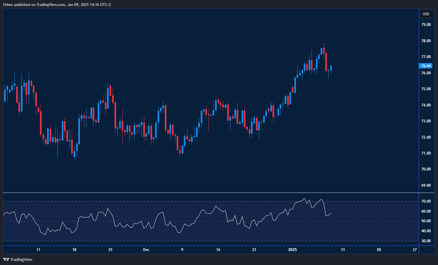 واصلت أسعار النفط البريطاني الارتفاع نتيجة لتقليص الإمدادات من دول منظمة أوبك، بالتزامن مع انخفاض مخزونات النفط خلال الأسبوع الماضي. كما أن التوسع في النشاط الاقتصادي يشير إلى زيادة متوقعة في الطلب على النفط، وهو ما يُؤمل أن يستمر خلال هذا الربع. علاوة على ذلك، جاء إنتاج روسيا من النفط في ديسمبر أقل من الهدف المحدد. هذا قد يشكل دافعًا إضافيًا لمزيد من الارتفاعات. يعد الحفاظ على مستوى الدعم 74.00 أمرًا حاسمًا للحيلولة دون حدوث عمليات بيع مكثفة. بينما يمثل المستوى 80.00 المقاومة الأقرب أمام أي ارتفاعات إضافية.