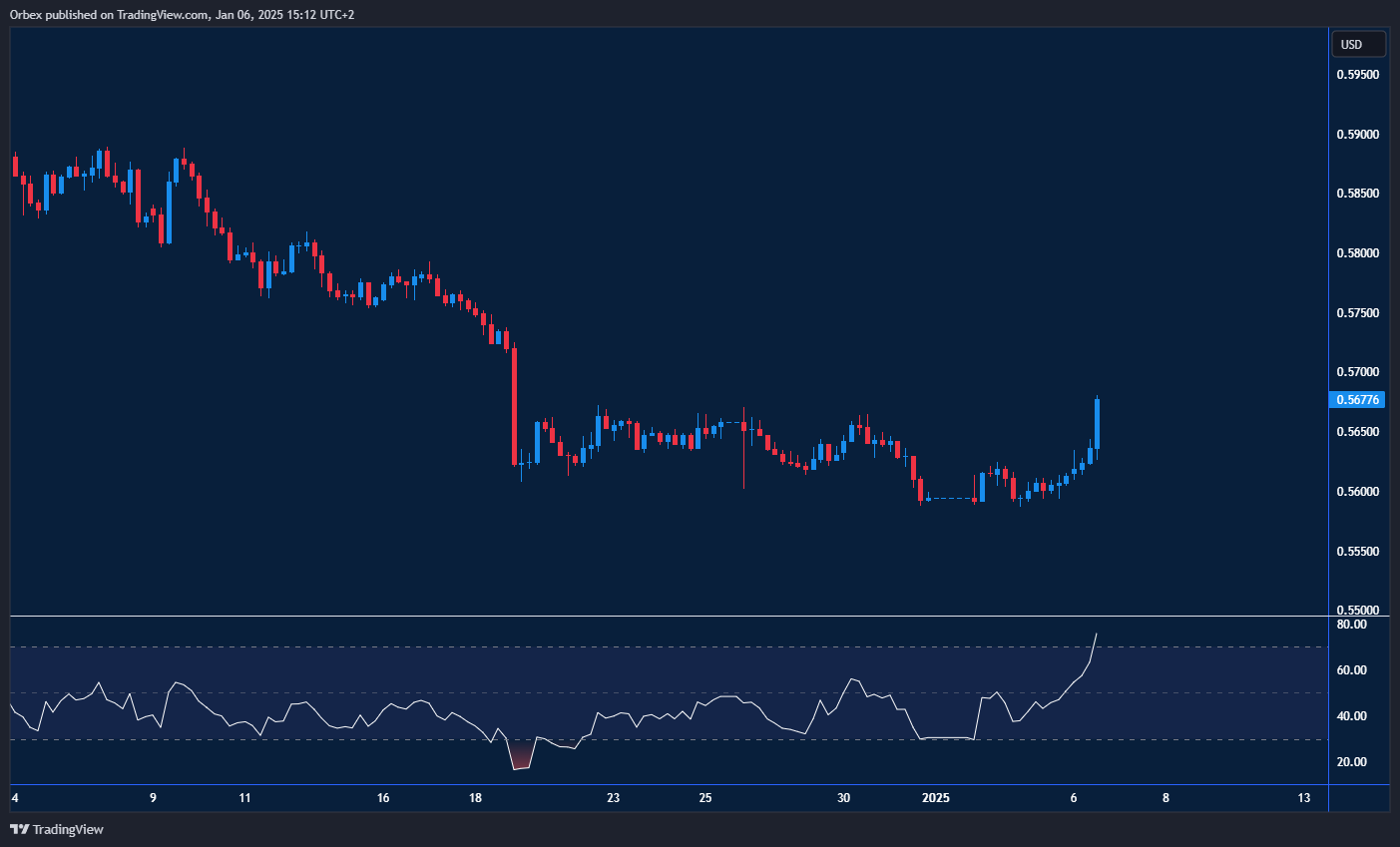 شهد الدولار الأمريكي تراجعًا نتيجة تسريبات حول التعريفات الجمركية الجديدة التي قد تفرضها إدارة ترامب. ومع اقتراب السعر من القمة السابقة عند مستوى 0.5700، فإن وجود مؤشر القوة النسبية في منطقة ذروة الشراء يضغط على زخم الصعود على المدى القصير. قد يؤدي الانخفاض دون مستوى 0.5650 إلى انسحاب بعض المتداولين الذين لا يتحملون الضغوط السوقية. هذا الأمر قد يدخل الدولار النيوزيلندي في مرحلة من التوطيد. من الناحية الإيجابية، يمثل المستوى 0.5720 مقاومة مباشرة أمام استعادة الزوج للخسائر التي تكبدها في نهاية العام الماضي. كما يشكل مستوى 0.5880 دعمًا أساسيًا، وكسره قد يؤدي إلى تصفية أوسع نطاقًا تدفع بالزوج نحو المستوى النفسي 0.5500.