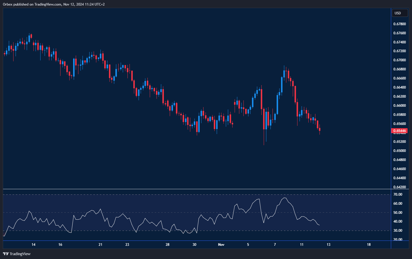 كان الدولار الأسترالي من بين العملات المتأثرة ب ارتفاع قيمة الدولار الأمريكي، حيث يتجه السعر لاختبار أدنى مستوى سابق عند 0.6520. ولا يزال الشعور العام ضعيفًا بعد فشل الانتعاش عند مستوى 0.6650، مما يشير إلى أن البائعين مستعدون للبيع عند أي صعود. يمثل مستوى القاع المزدوج عند 0.6540 آخر خطوط دفاع المشترين، وفي حال كسره قد يؤدي إلى موجة بيع جديدة تدفع السعر إلى أدنى مستوى له منذ عدة أشهر عند 0.6420. وعلى الجانب الصعودي، يمثل مستوى 0.6600 أول مقاومة، وفقط الاختراق فوق 0.6680 يمكن أن يحقق تعافيًا ملموسًا.
