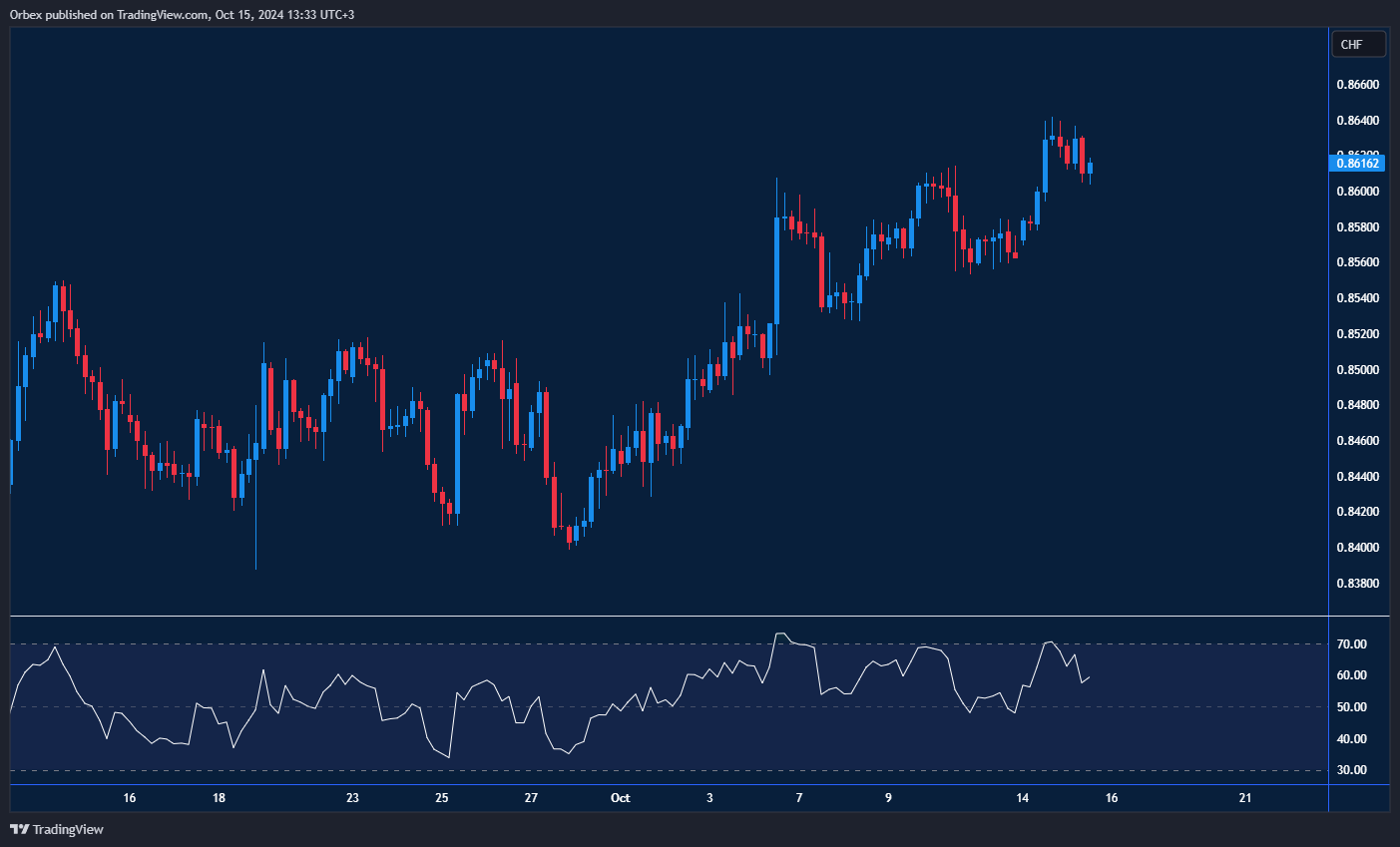لا يزال الفرنك السويسري يجد صعوبة في منافسة الدولار الأمريكي الذي يزداد قوة بوضوح. فاجتياز المستوى النفسي 0.8600 يعكس سيطرة المشترين المتواصلة بشكل قوي على حركة السعر. ومع اقتراب مؤشر القوة النسبية من المنطقة المحايدة، يبرز المستوى 0.8660 كأول مستوى مقاومة قد يظهر فعاليته. وفي حال شهد الزوج مزيدًا من التراجع، يصبح من الضروري كسر مستوى 0.8540 عند القاع السابق للإشارة إلى تحول الاتجاه نحو 0.8930، خاصةً إذا كانت حركة السعر مستقرة لفترة طويلة.