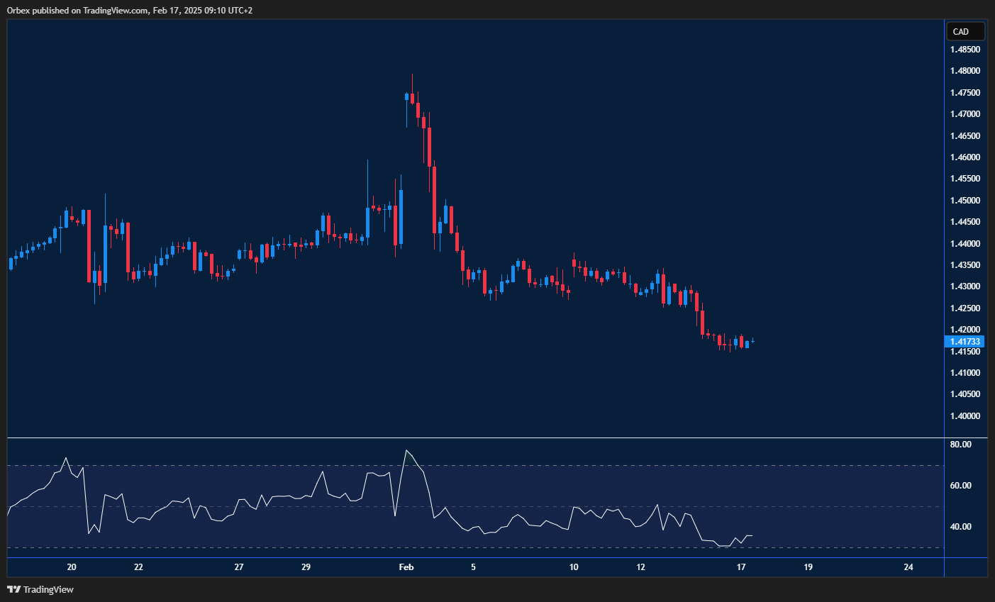 واصل الدولار الكندي تحقيق مكاسب أمام نظيره الأمريكي بعد تسجيله قاعًا جديدًا. حيث يسعى الزوج لتأكيد كسر المستوى النفسي عند 1.4000. بعد فترة من التماسك السعري، يبدو أن حركة السعر على المدى القصير تستهدف اختبار مستوى الدعم عند 1.4150. في حال تم كسره، فقد يدفع الدولار الأمريكي نحو القاع الحرج عند المنطقة النفسية المذكورة. على الجانب الصاعد، يمثل 1.4260 أول مقاومة، حيث قد يواجه الزوج صعوبة في تجاوز مستوى التماسك السابق عند 1.4320. خاصةً مع بقاء مؤشر القوة النسبية في منطقة التشبع البيعي.