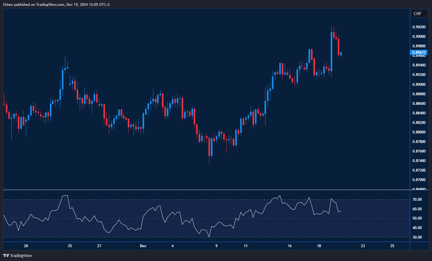 تراجع الدولار الأمريكي عقب القرار الأخير للفيدرالي، وهو القرار الذي دفع الزوج للارتفاع بأكثر من 100 نقطة أساس في وقت سابق. ويواصل الزوج حاليًا تراجعه بحثًا عن طلبات شراء، حيث لاتزال المعنويات السلبية مسيطرة على السوق على المدى القصير. ومع ابتعاد مؤشر القوة النسبية عن منطقة ذروة الشراء، ظهرت إشارة تباين سلبي قوية، مما يعزز احتمالية المزيد من الانخفاض. يمثل مستوى الدعم عند 0.8920، الناتج عن الارتداد الأخير، المستوى التالي لمعرفة ما إذا كان المشترون سيصمدون في السوق. أما المقاومة المباشرة فتقع عند 0.8980، والتي يجب تجاوزها ليتمكن الزوج من استهداف القمة عند 0.9050 مرة أخرى.