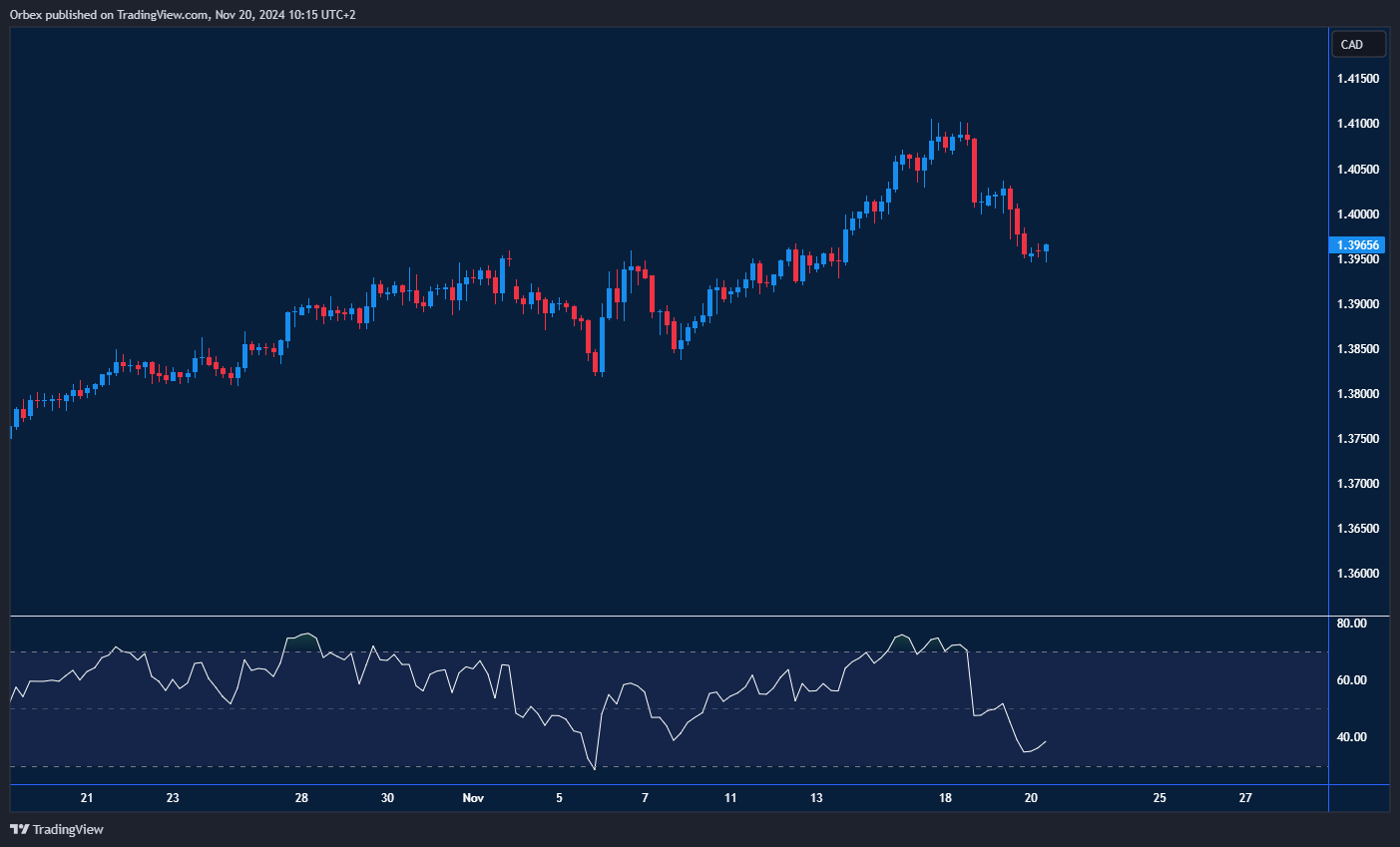 تراجع الدولار الأمريكي بعد محاولة فاشلة لاختراق مستوى المقاومة الحاسم عند 1.4100، مما أدى إلى انخفاض الزوج بأكثر من 100 نقطة. هذا التراجع دفع بعض المشترين إلى التخلي عن مراكزهم، مما مهد الطريق لاستمرار الاتجاه الهبوطي إذا كُسر الدعم النفسي عند 1.4000. في هذه المرحلة، يظهر مؤشر القوة النسبية دخول السعر إلى منطقة التشبع البيعي، وهو ما قد يثير اهتمام المشترين الباحثين عن ارتداد صعودي. يمثل مستوى 1.4050 اختبارًا أوليًا لقياس مدى قوة المشترين في دعم حركة السعر والتأكيد على إمكانية انعكاس الاتجاه مؤقتًا.
