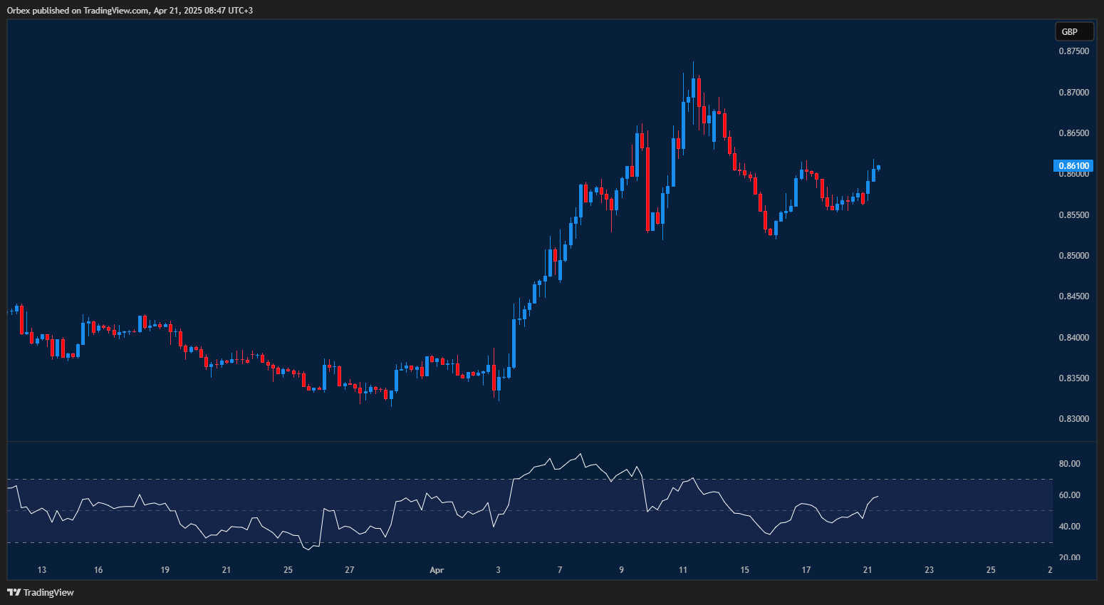 انخفض اليورو من قمته الأخيرة في ظل استمرار حالة الحذر في الأسواق. ويتداول الزوج فوق القاع الأخير عند 0.8530، بينما ساهم اقتراب مؤشر القوة النسبية من المنطقة المحايدة في جذب بعض المشترين على المدى القصير. ومع ذلك، سيحتاج المشترون إلى اختراق مستوى 0.8650 لضمان امتداد الصعود باتجاه القمة الأخيرة عند 0.8730. وفي حال فشل الزخم الشرائي، قد يتخلى المستثمرون عن مراكزهم، مما يفتح الطريق للهبوط نحو 0.8570 ثم 0.8500.