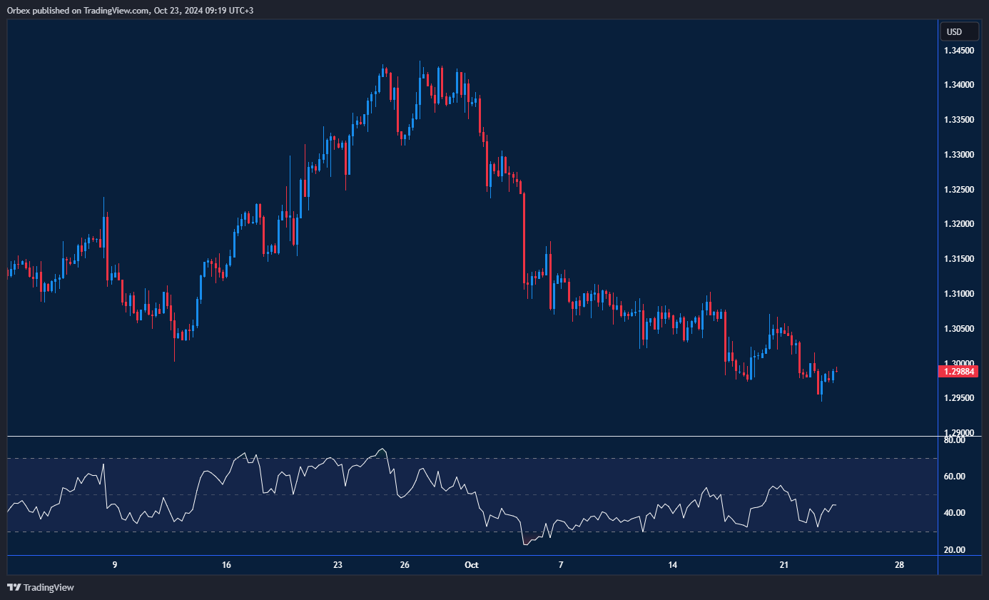يواصل الجنيه الإسترليني تراجعه، حاله كحال العديد من العملات المنافسة للدولار الأمريكي. ويسعى الزوج لإيجاد الدعم اللازم بعد موجة الهبوط المستمر منذ بداية أكتوبر. ورغم ذلك، ساهمت عمليات شراء الانخفاض من قبل المتداولين في ارتداد الزوج عن المستوى 1.2950. هذا الأمر يؤكد التباين الإيجابي على مؤشر القوة النسبية. إذا تمكن الزوج من الإغلاق أعلى المستوى 1.3025، فقد يمتد هذا الارتداد ويتجاوز الزوج المستوى 1.3100. مما قد يسهم الاختراق الإيجابي في تحقيق تعافٍ مستدام.