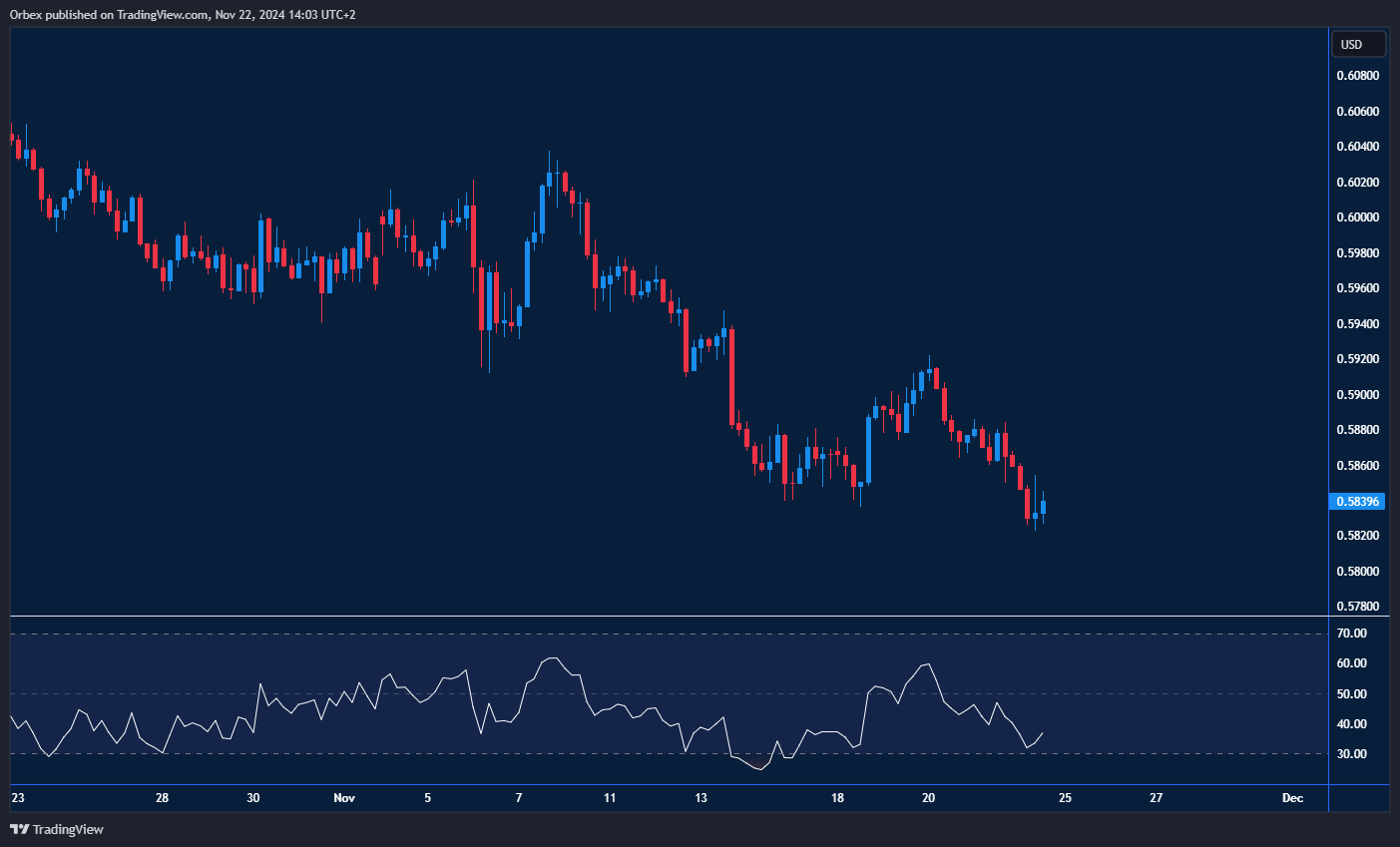 تراجع الدولار النيوزيلندي مع استمرار هيمنة الدولار الأمريكي القوية. يمثل مستوى 0.5880 الحاجز الأول الذي يجب تجاوزه لتخفيف الضغوط الهبوطية. أبعد من ذلك، يُعتبر مستوى 0.5960، الذي تحول من دعم إلى مقاومة، سقفًا رئيسيًا قد يستغله البائعون للعودة إلى السوق طالما استمرت المعنويات السلبية. يُعد القاع الأخير عند 0.5820 الدعم الفوري، وكسره قد يشير إلى استمرار الاتجاه الهبوطي.
