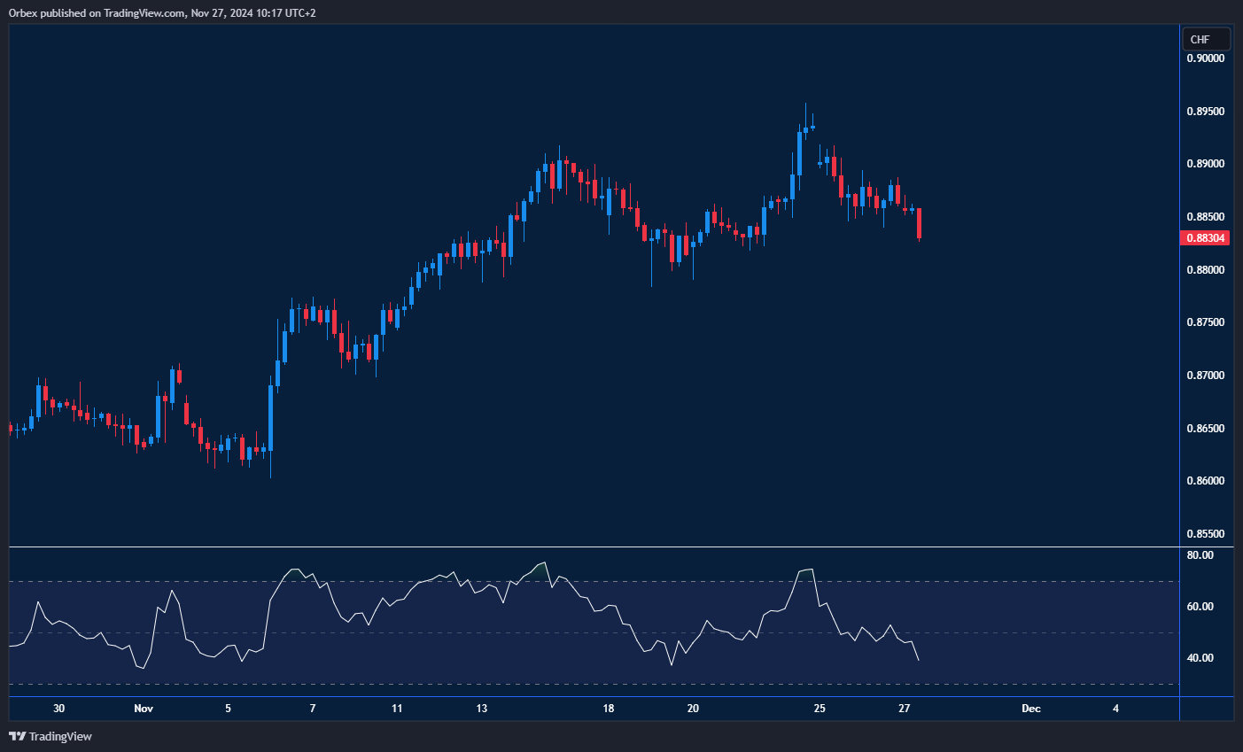 شهد الدولار الأمريكي مزيدًا من التراجع بعد عجزه عن سد الفجوة السعرية الأخيرة التي ظهرت خلال عطلة نهاية الأسبوع. تسبب الانخفاض إلى ما دون مستوى الدعم الأقرب عند 0.8850، في تصفية مراكز الشراء اليومية. سيتم مراقبة مستوى الدعم التالي عند 0.8800 لمعرفة ما إذا كان المشترون سيبدؤون في التدخل والشراء مرة أخرى. ستظل المعنويات إيجابية تجاه الزوج، بشرط أن يتمكن الدولار من الارتفاع فوق مستوى المقاومة اليومي الهام عند 0.8950. ومع توجه مؤشر القوة النسبية نحو منطقة ذروة البيع، من المتوقع أن يقوم المشترين بتصيد الفرص. ويعتبر المستوى 0.8900 هو أول مقاومة يجب تجاوزها لتخفيف الضغط السلبي على الزوج.