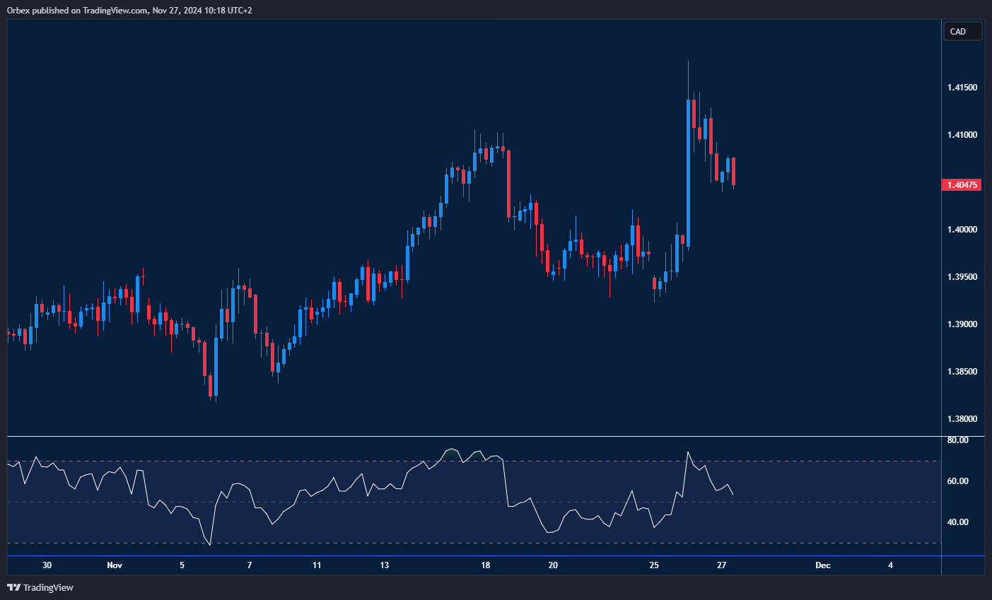 يسعى الدولار الكندي إلى التعافي بالكامل من الارتفاع الأخير الذي شهد زيادة بمقدار 100 نقطة. يُعتبر الهبوط دون مستوى 1.4100 إشارة على إمكانية التعافي، وذلك بعد تصريحات مسؤولي الاحتياطي الفيدرالي حول نيتهم الاستمرار في خفض معدلات الفائدة بشكل تدريجي. إذا استمر الزوج في الانخفاض، فإن مستوى 1.3930 على الرسم البياني اليومي يمثل دعمًا حاسمًا يجب أن يصمد للحيلولة دون حدوث تصحيح أعمق نحو مستوى 1.3800. من جهة أخرى، يحتاج المشترون إلى استعادة مستوى 1.4100 من منطقة الطلب السابقة لدعم استقرار الدولار الأمريكي.