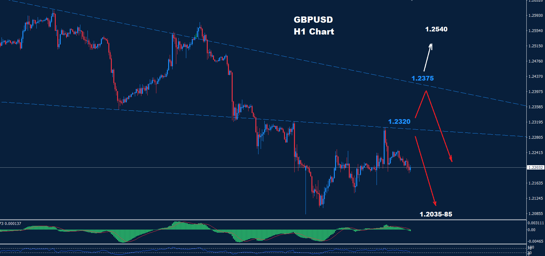 ومع ذلك، وطالما أن السوق يحتفظ بالتداولات تحت 1.2375، فإن موجة الاتجاه الهبوطي ستستمر حيث تقع منطقة الدعم عند منطقة 85-1.2035، والتي قد تبقى على فرصة حركة تصحيح ارتداديه في السوق