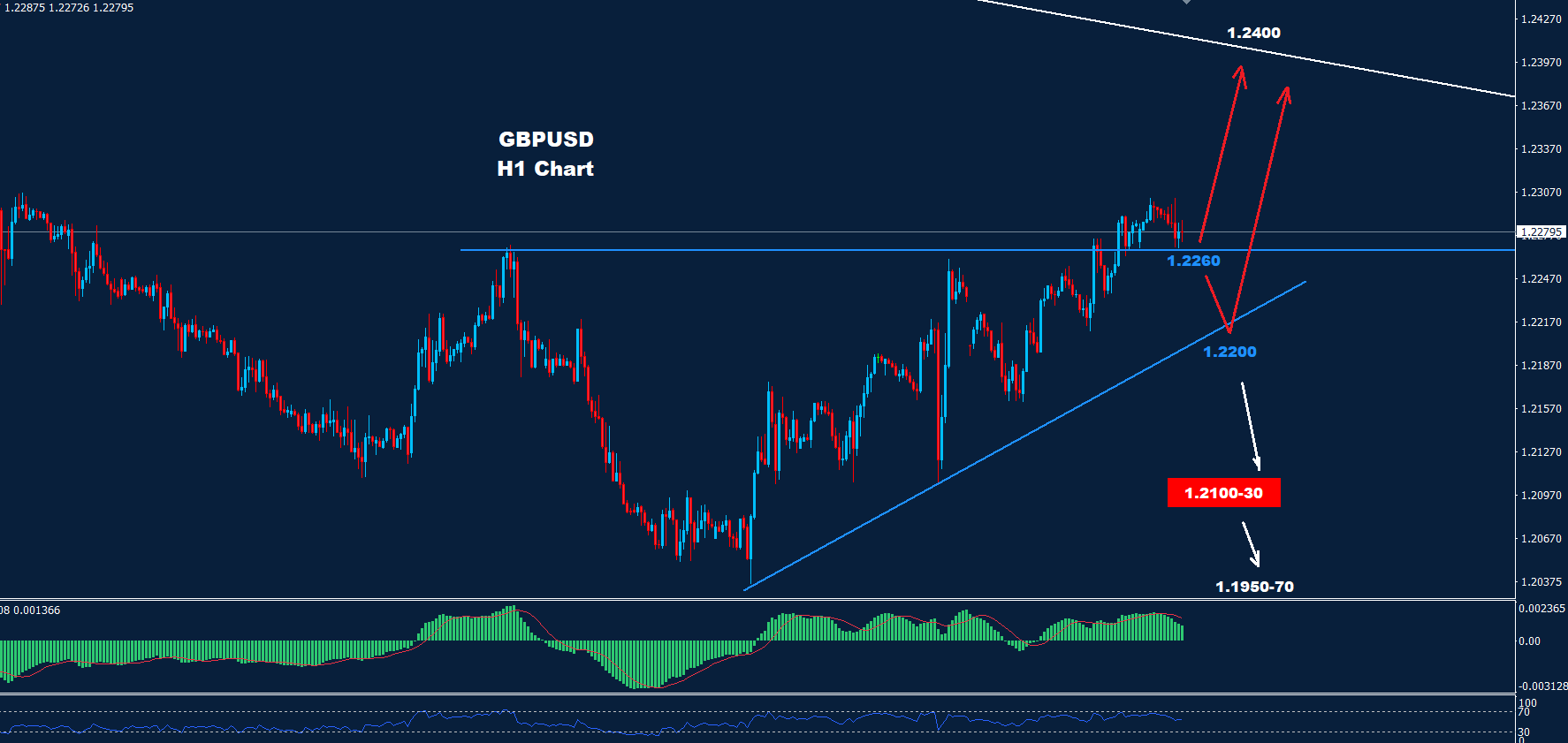 | المستوى الأول | 1.2260 | 1.2400-20 |