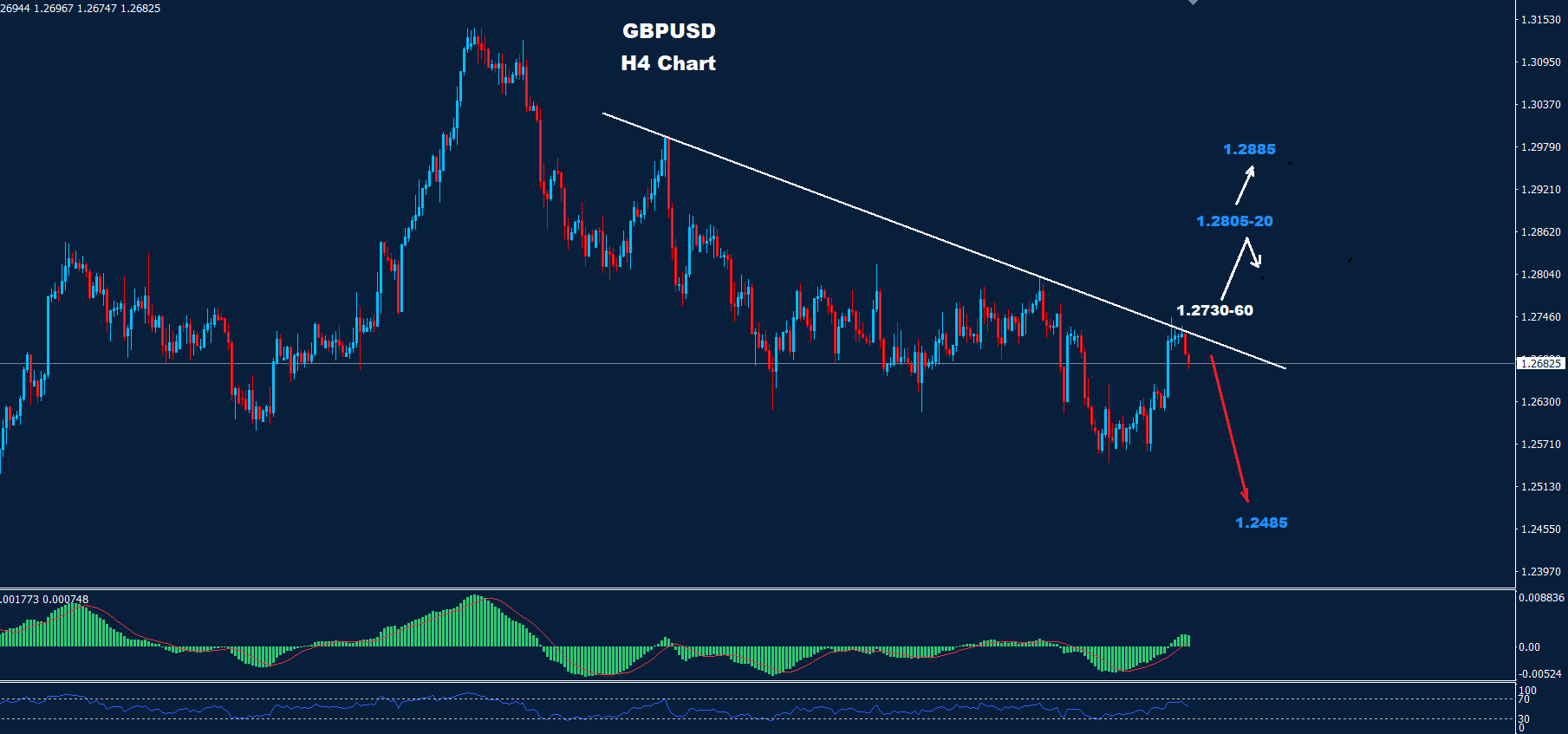 كما نرى على الرسم البياني وطالما استمر السوق في الحفاظ على تداولاته تحت هذه المقاومة 60-1.2730 فإن حركة تراجع تصحيحي قد تضرب السوق نحو 1.2485.