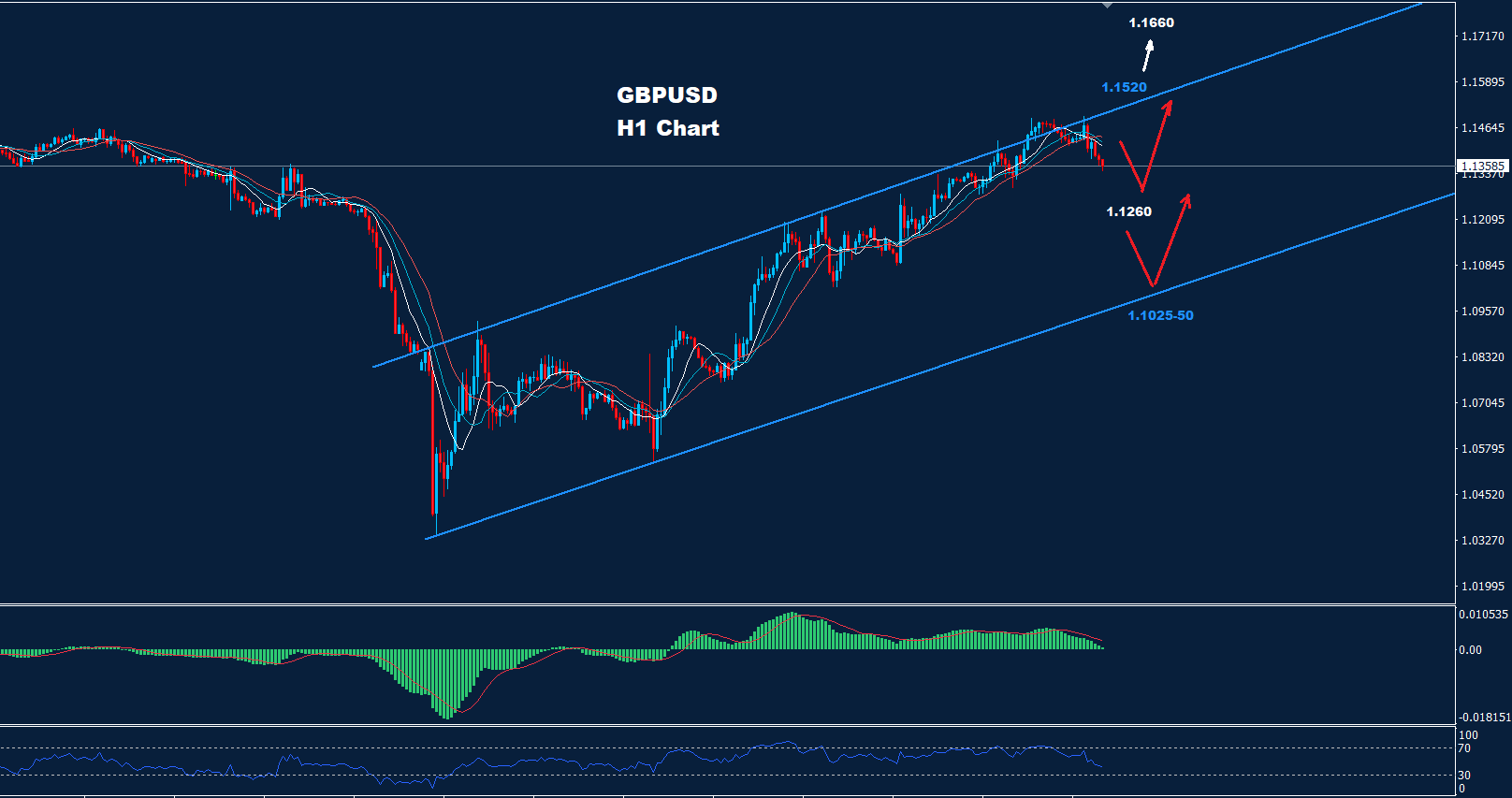 تواجه قناة التداول هذه مقاومة حول 1.1520 بينما الدعم حول 1.1260 والتي قد تنشئ منطقة تداول بينهما