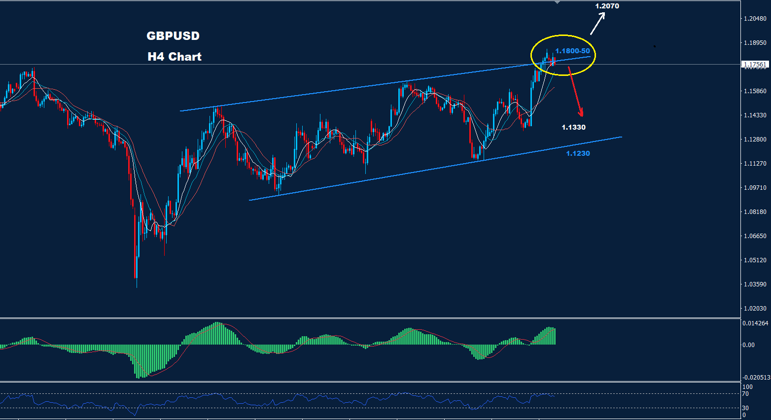 تمكن الجنيه الاسترليني مقابل الدولار الأميركي يوم الجمعة الماضي من الاختراق فوق مستويات المقاومة للقناة السعرية الصاعدة 1.1800 بينما تمكن السوق في وقت مبكر اليوم من العودة داخل نفس القناة.
