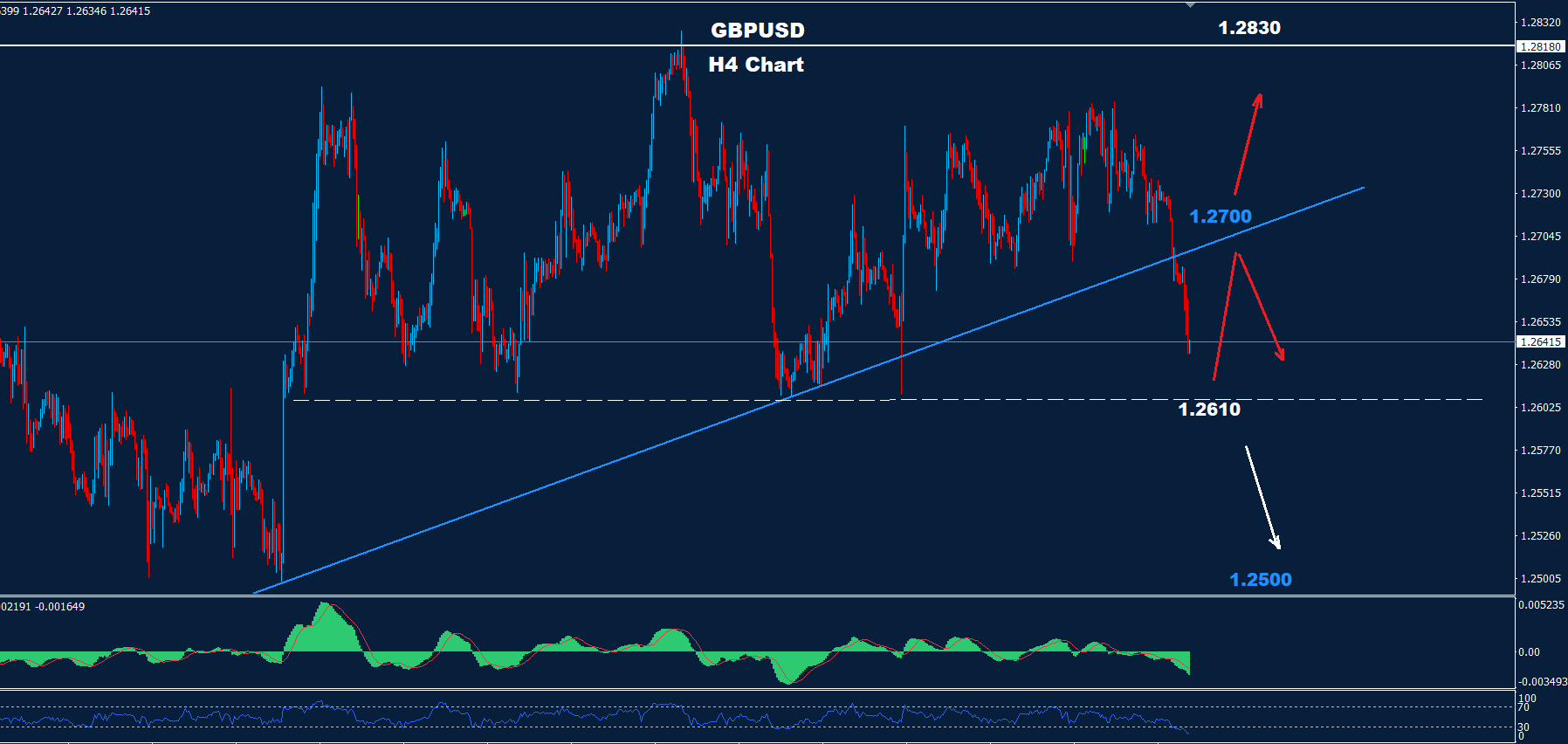 تمكن الجنيه الإسترليني مقابل الدولار من التراجع عن المقاومة 1.2770 كما نصحنا من قبل بينما يقترب السوق من منطقة الدعم 1.2610 مرة أخرى.