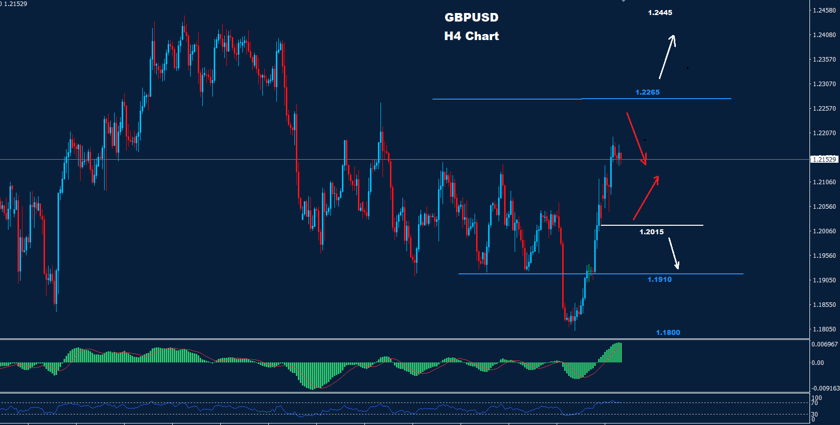 لا يزال السوق يواجه مقاومة حول 1.2265 بينما يوجد دعم حول 1.2015 والذي قد يحتفظ بمنطقة التداول.