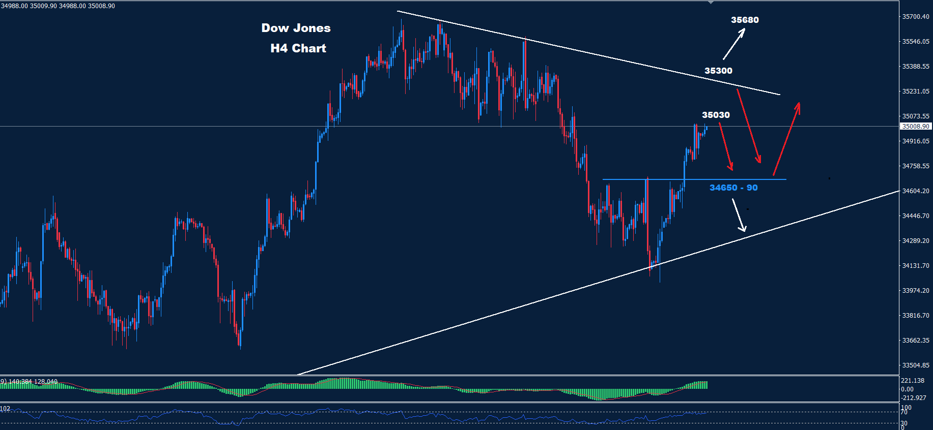 تحت 34650 هناك فرصة لمزيد من الانخفاض نحو 34250.