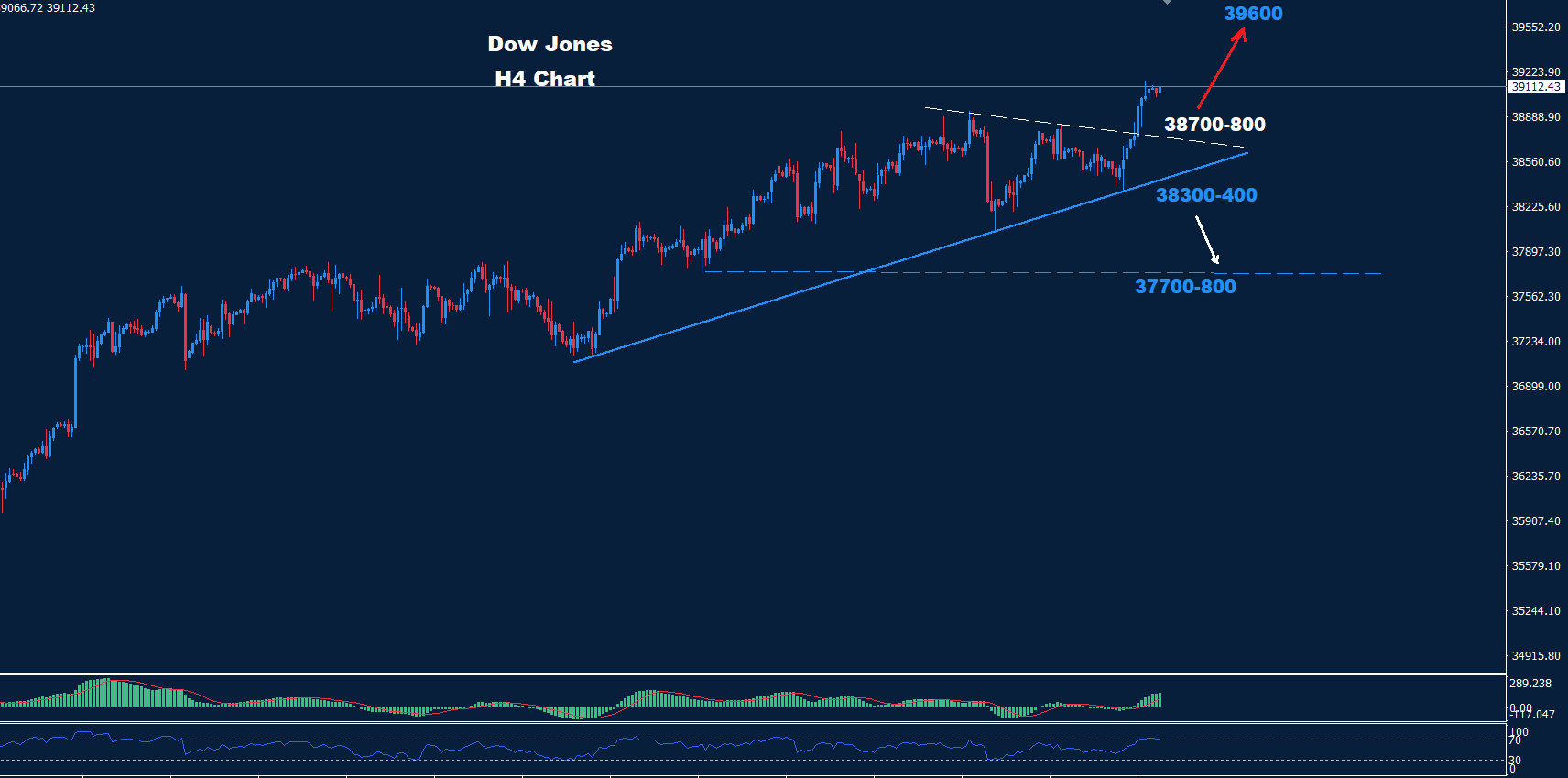 تمكن مؤشر داو جونز الأسبوع الماضي من اختبار منطقة الدعم 800-38700