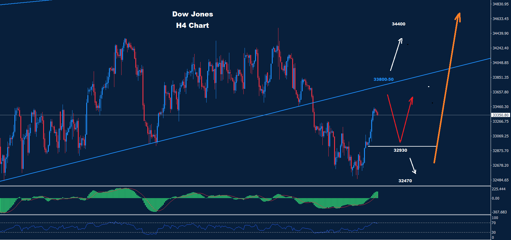 تمكن مؤشر الداو من تسجيل أدنى مستوى حول 32497 الأسبوع الماضي حيث تمكن السوق من الاحتفاظ بالتداولات فوق الدعم 32470 والذي نجح في دفع تصحيح ارتدادي نحو المقاومة 33260 كما نصحنا من قبل.