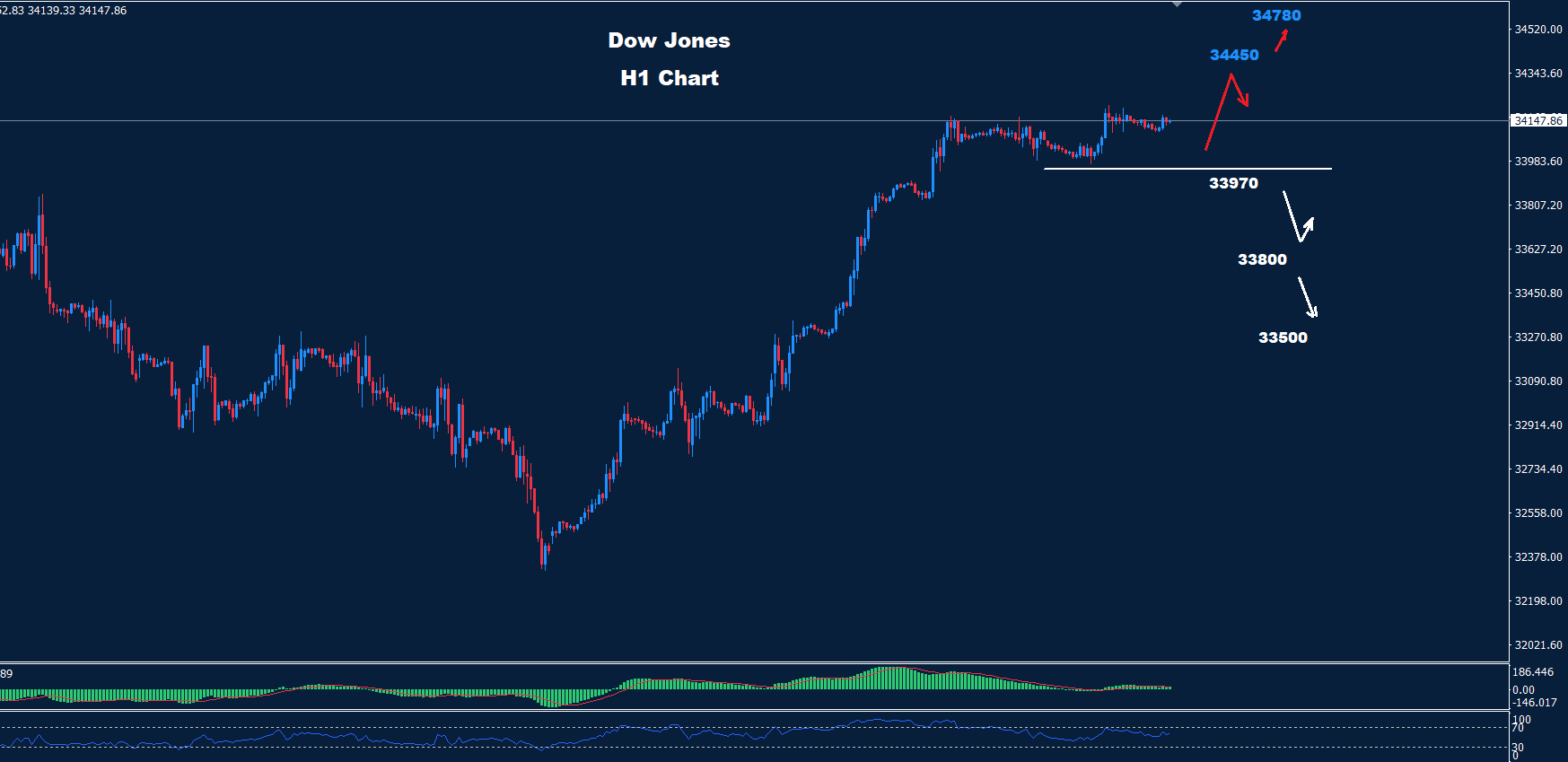 تمكن مؤشر داو جونز من الحفاظ على التقدم حيث تمكن من اختبار منطقة المقاومة 34150