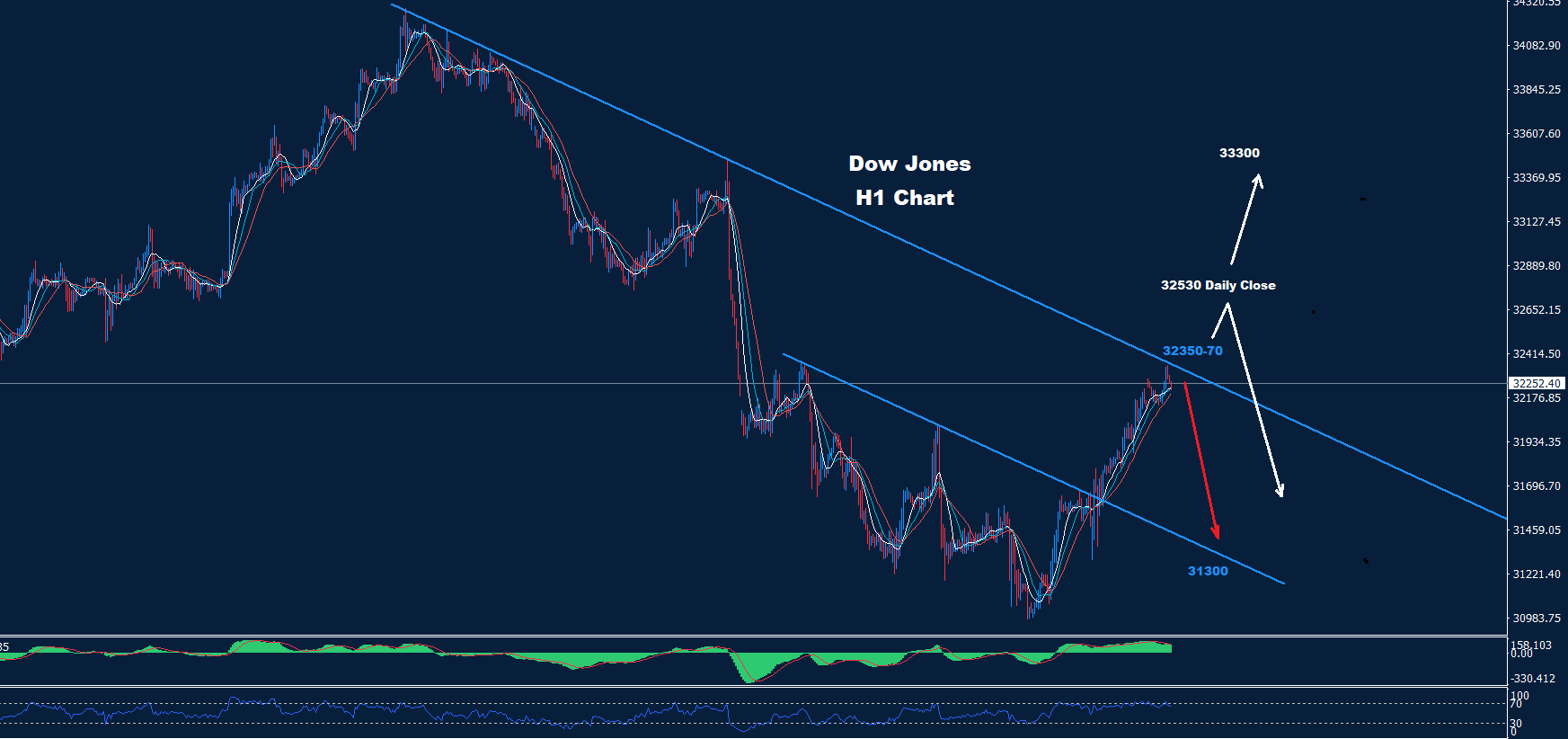 تمكن مؤشر الداو يوم أمس من تحقيق الهدف الثاني 32350 كما أشرنا الأسبوع الماضي.