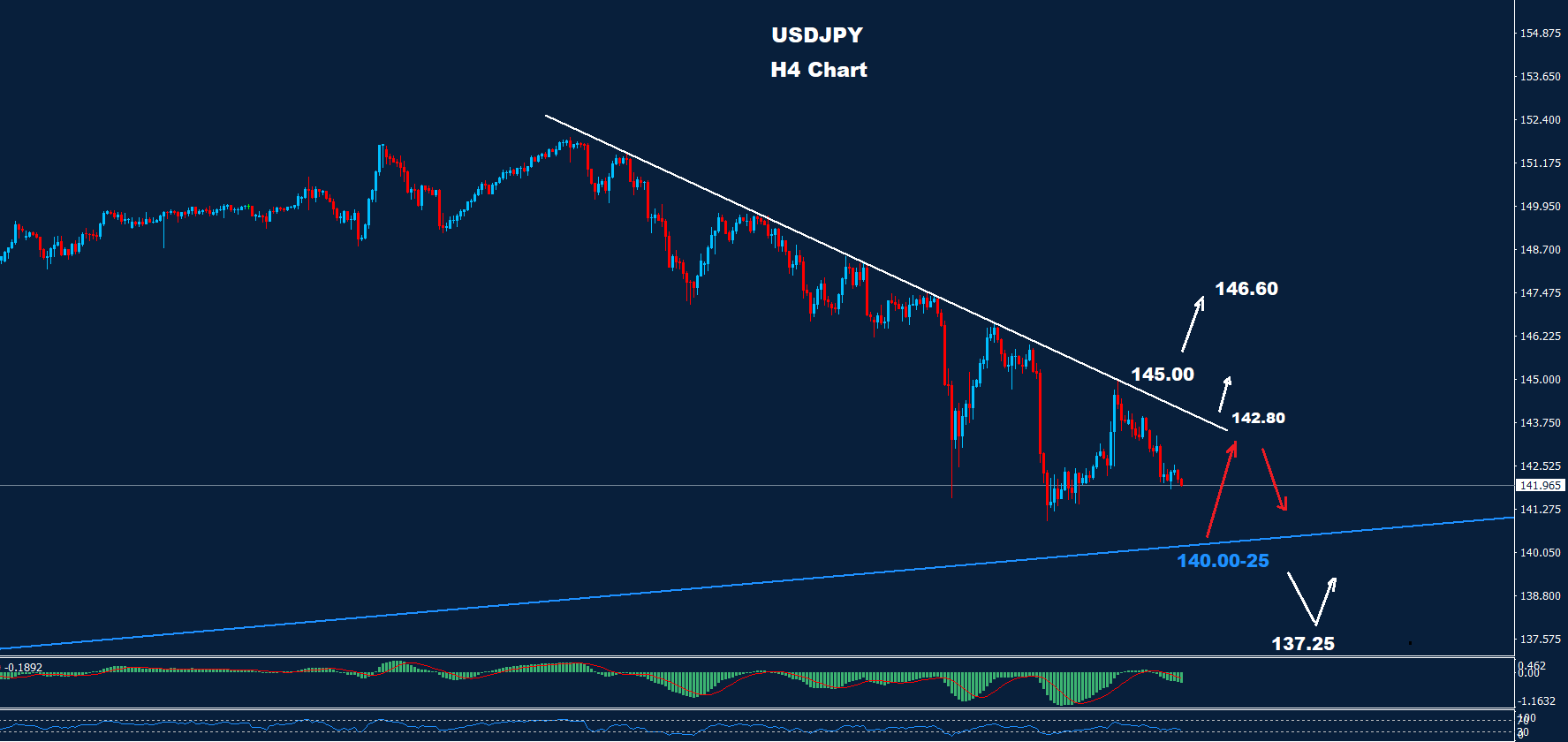 من المتوقع حدوث المزيد من الانخفاض تحت 140.00 حيث يقع الدعم الرئيسي عند منطقة 25-137.00