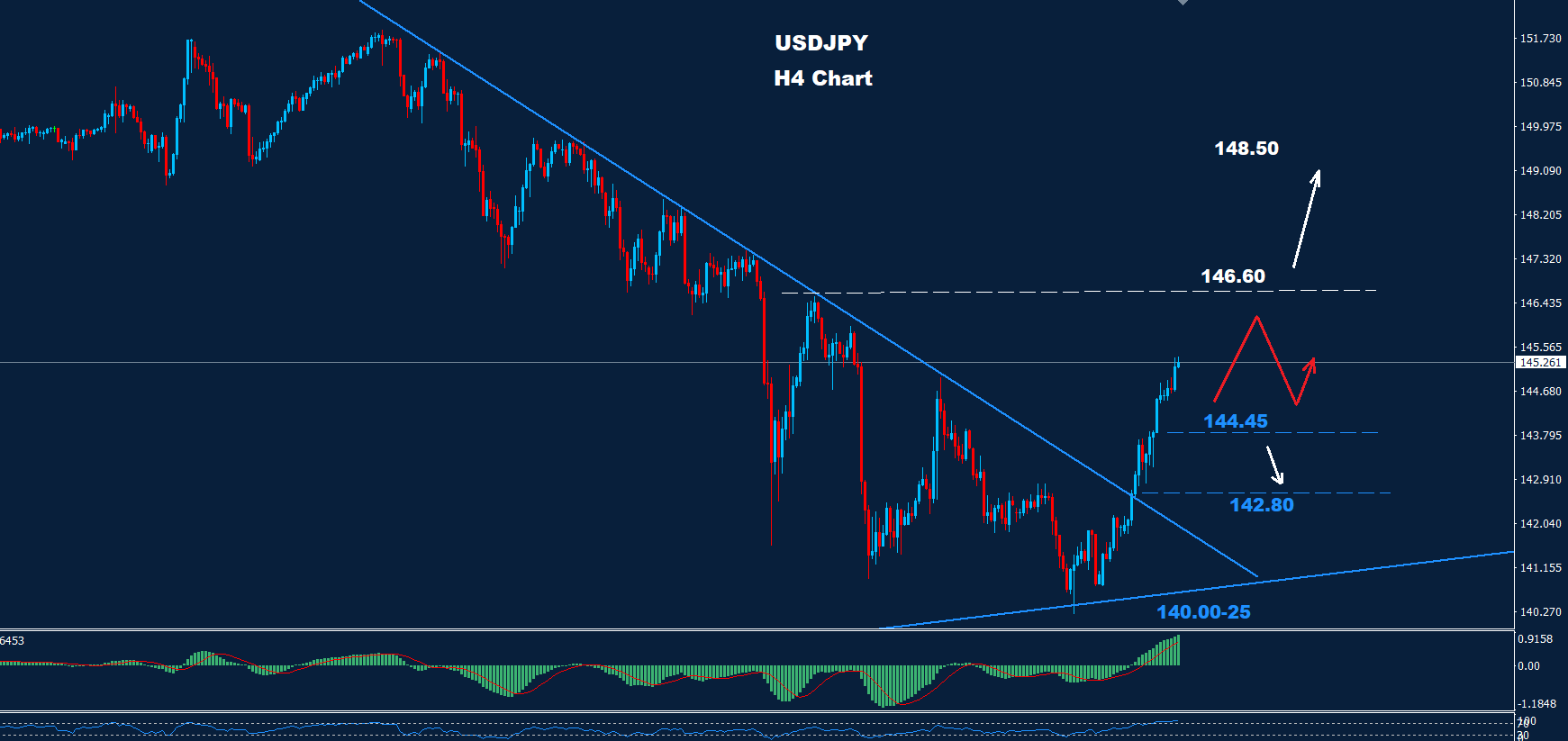هذه المقاومة 146.60 قد تعطي فرصة أخرى لمنطقة تداول نحو 144.45 أو 142.80.