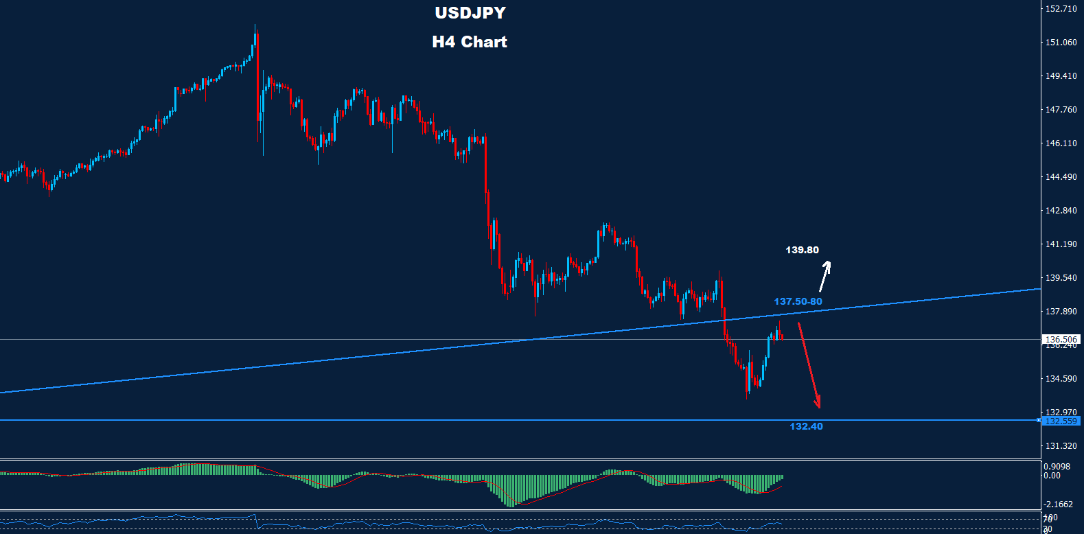 ما زلنا نحتفظ بتوقعاتنا السابقة بأنه طالما استمر السوق في الاحتفاظ بالتداولات دون 80-137.50 فقد تضرب السوق موجة هبوط أخرى باتجاه 132.40.