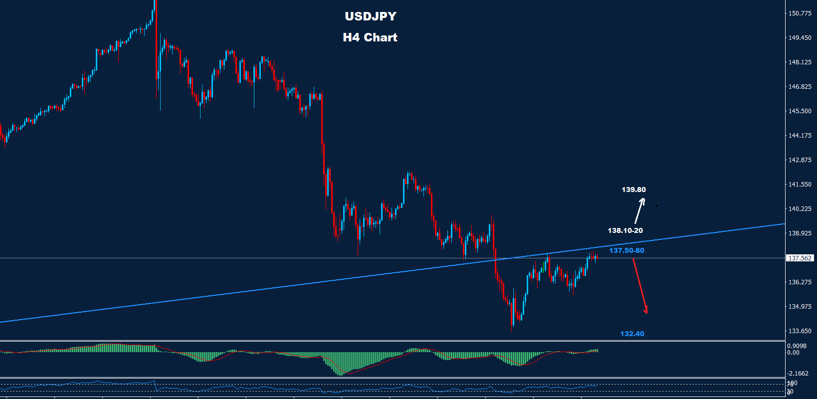 ما زلنا نحتفظ بتوقعاتنا السابقة بأنه طالما استمر السوق في الاحتفاظ بالتداولات دون 80-137.50 فقد تضرب السوق موجة هبوط أخرى باتجاه 132.40.