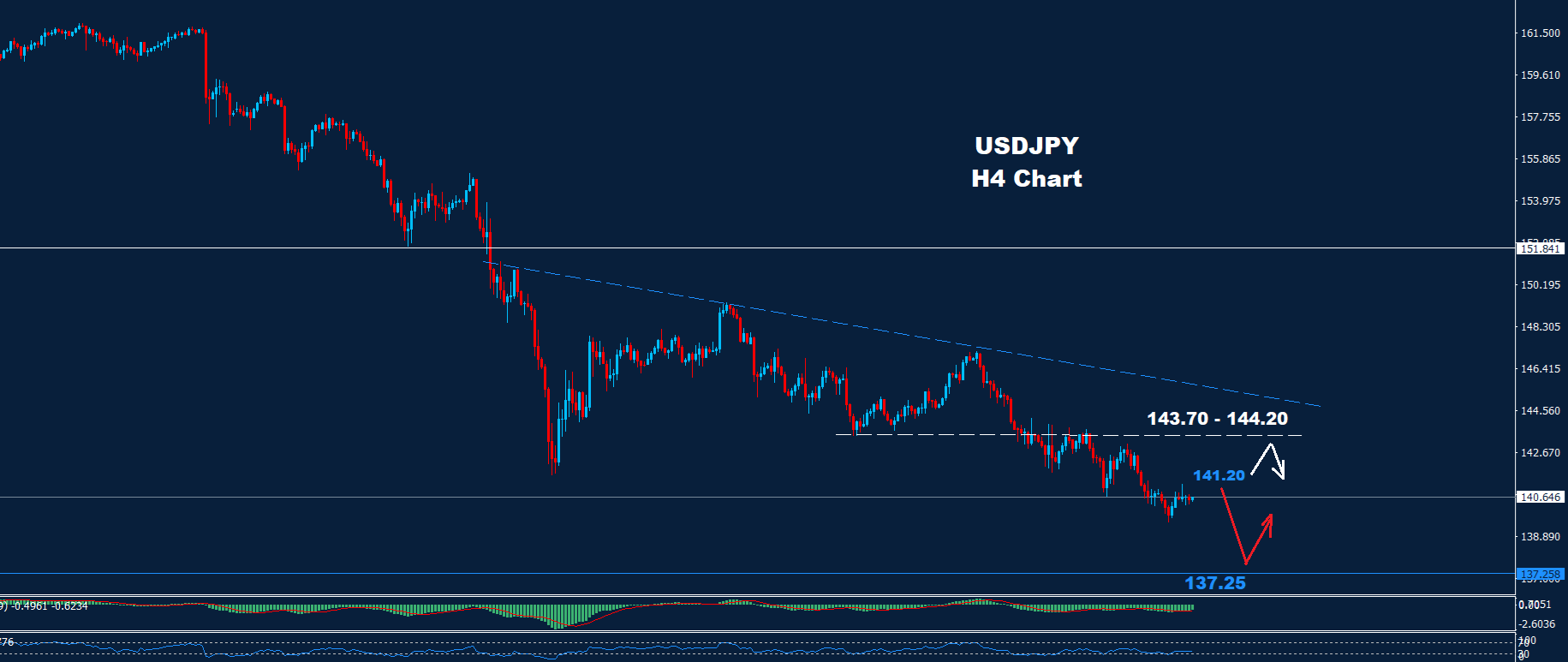 كما نرى على الرسم البياني، يواجه السوق أول مقاومة عند مستوى 141.20، حيث طالما السوق متماسك تحت هذه المستويات فان مزيد من الهبوط سيكون متوقع، في حين تقع منطقة الدعم عند مستوى 137.25، وهو ما قد يدفع إلى حركة تصحيح ارتداديه