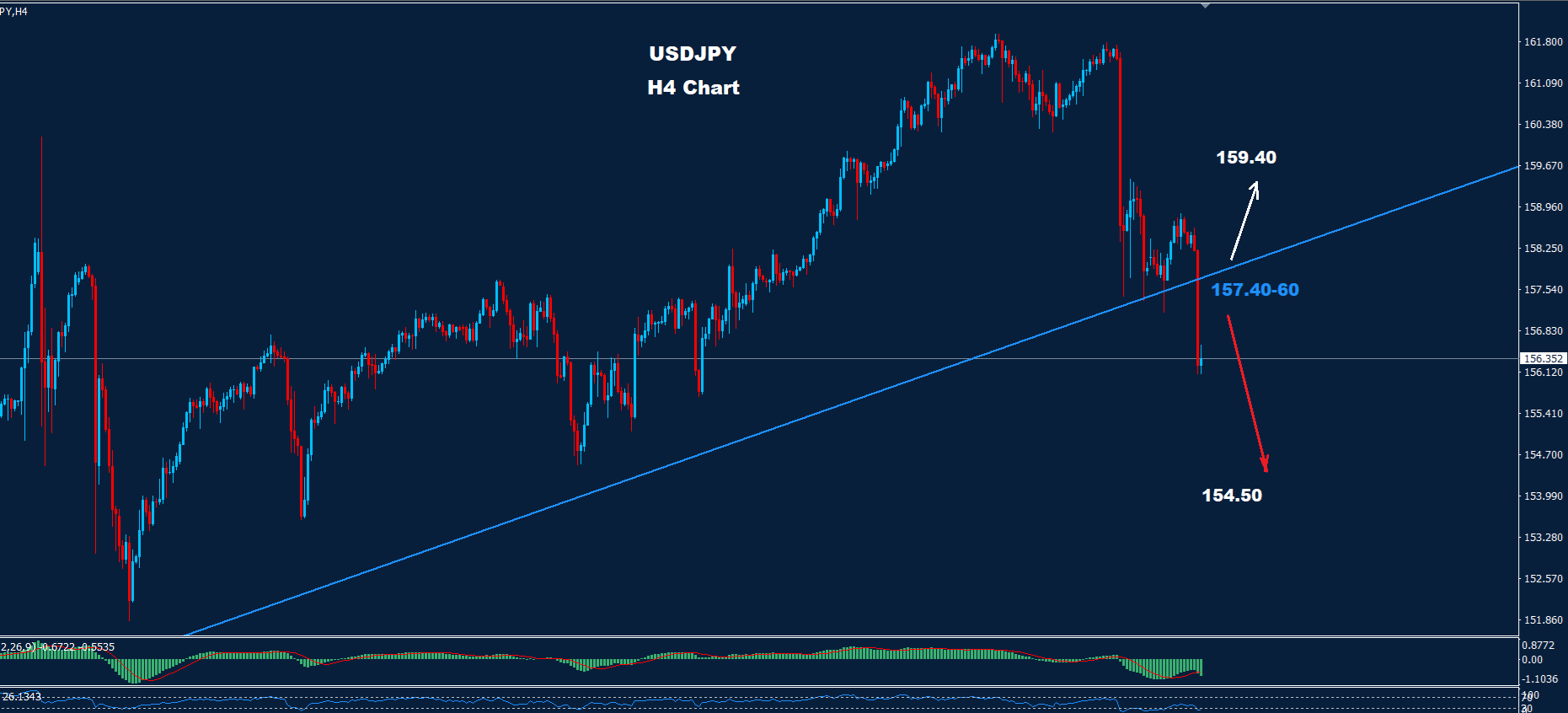 تمكن زوج الدولار الأمريكي مقابل الين الياباني من الاختراق إلى ما دون مستوى 157.60 مع حركة هبوط سريعة