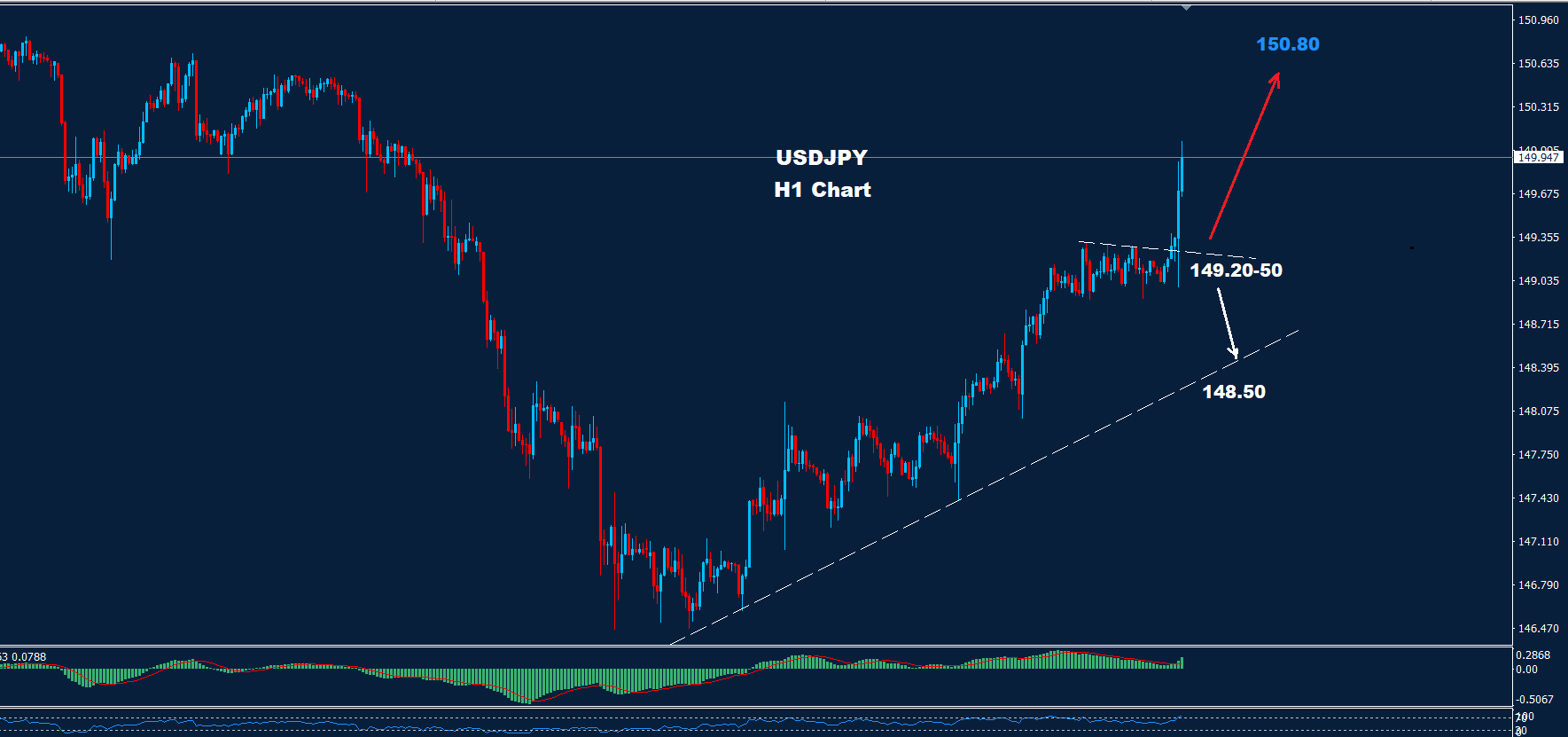 نصحنا قبل ذلك إنه وفوق 149.50 فان هناك فرصة للتقدم أكثر نحو 150.80.