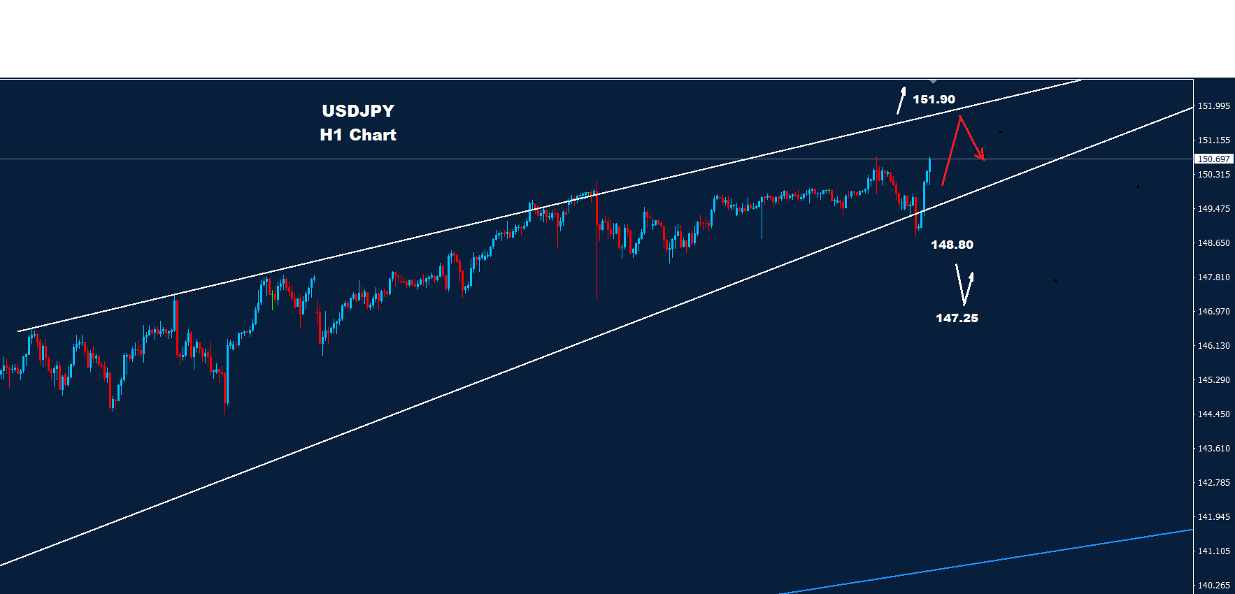 كما نرى على الرسم البياني، لا يزال لدى السوق مجال أكبر للتقدم بينما تقع المقاومة للمدى اليومي حول 150.75.