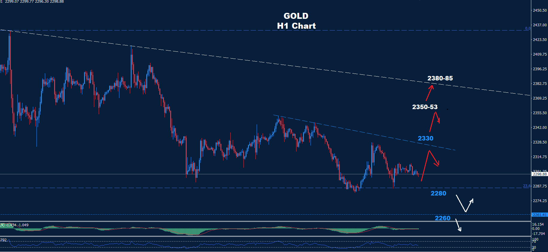 تحت 2280 من المتوقع حدوث المزيد من الانخفاض لاختبار 2260 والذي بدوره قد ينشط حركة ارتداد أخرى