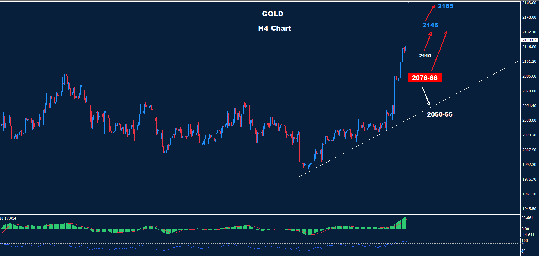 تمكن الذهب من تفعيل موجة تقدم حيث تمكن من الوصول إلى أعلى مستوى 2127 حتى الآن