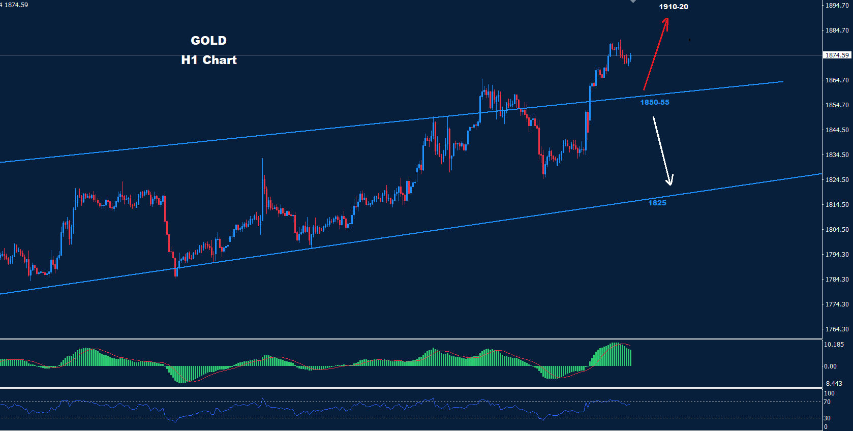 طالما أن السوق يحافظ على التداولات فوق هذا الدعم، فقد يحتفظ السوق بفرصة للتقدم أبعد من ذلك لكسر فوق حواجز 1879 باتجاه منطقة 20-1910.