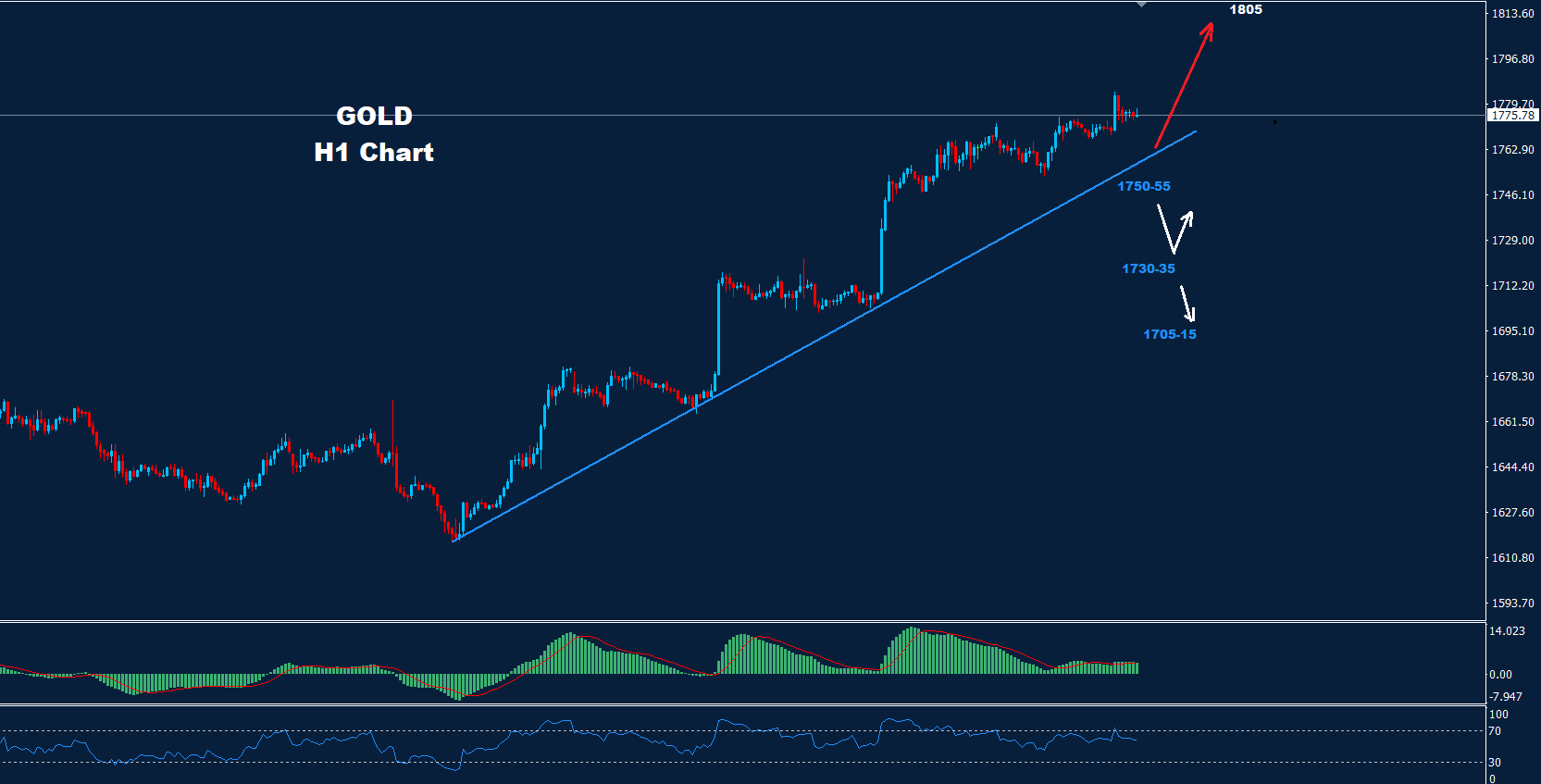 وطالما استمر السوق في الاحتفاظ بالتداولات فوق هذه المستويات، فإن فرصة المزيد من التقدم نحو الهدف 1805 لا تزال قائمة.