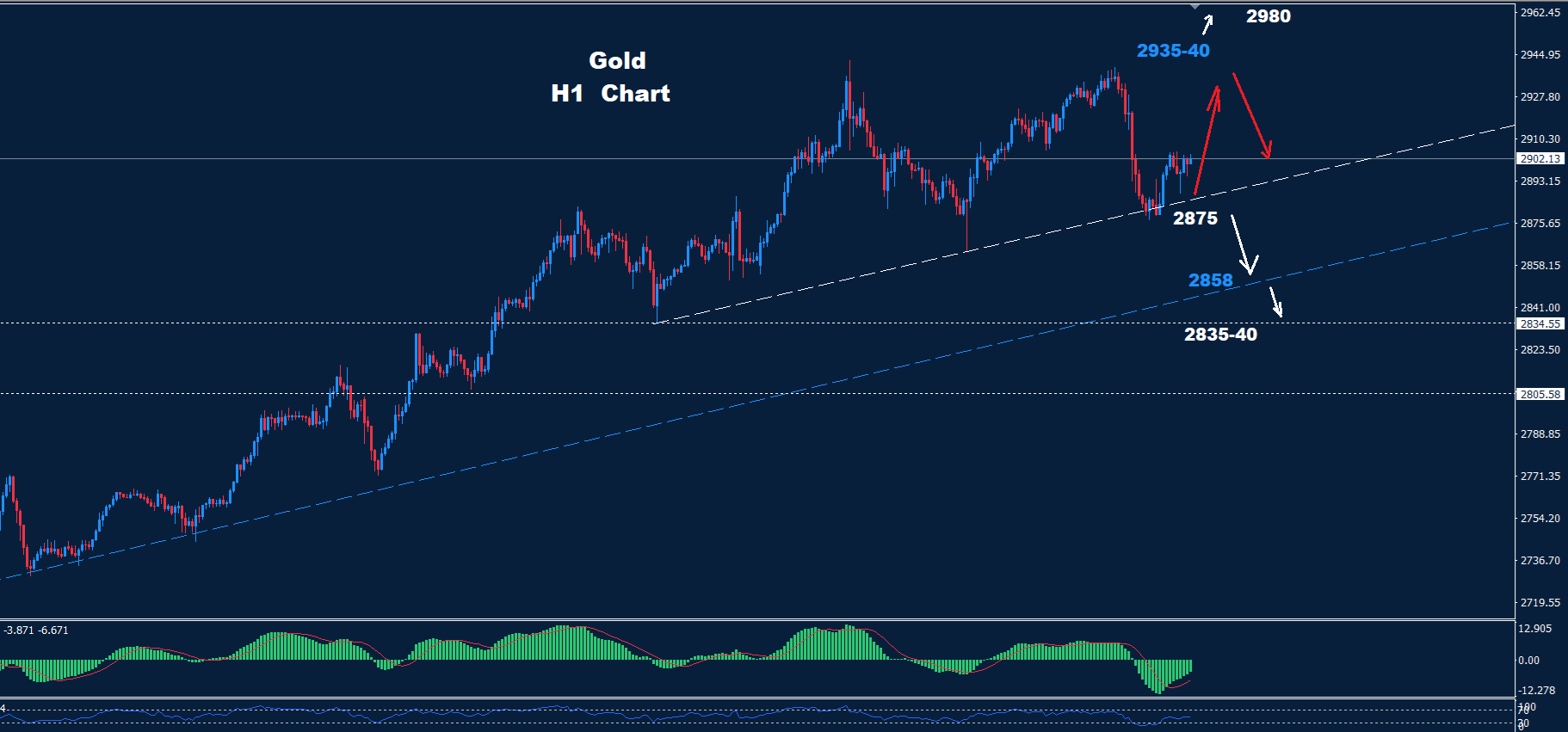 تمكن الذهب من الحفاظ على التداولات فوق مستوى الدعم 2875 حيث تمكن من التقدم نحو الهدف 40-2935 مرة أخرى