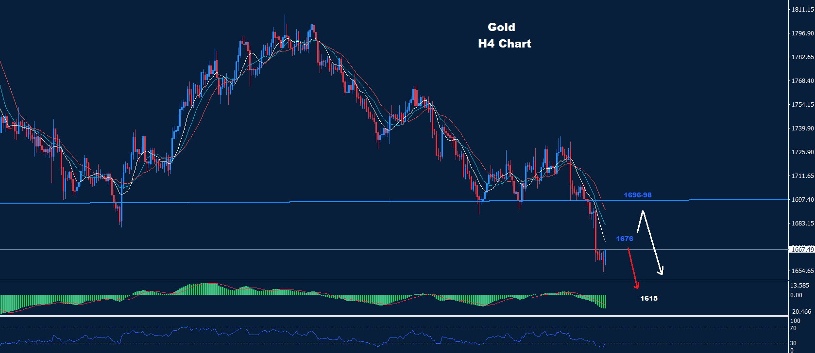 تمكن الذهب يوم الخميس الماضي من اختراق مستوى دعم منتصف المدى 1676 والذي قد يضع الذهب تحت ضغط الاتجاه الهبوطي.