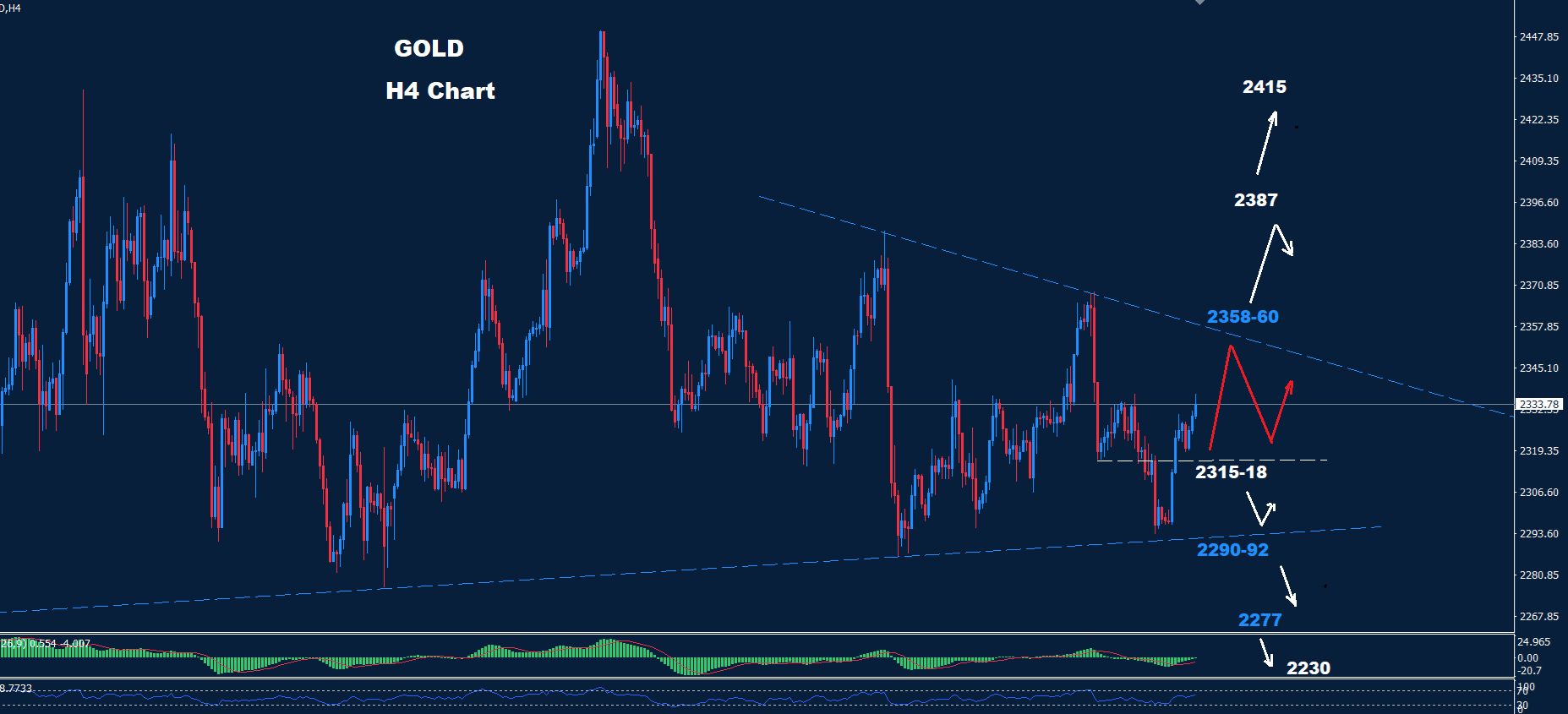 تمكن الذهب من اختراق مستوى 2318 حيث أصبح السوق الآن داخل منطقة هدفنا 38-2385