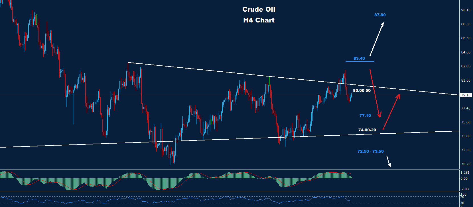 فشل النفط الخام في اختراق منطقة المقاومة 83.40، حيث تمكن السوق من تحقيق الهدف الأول 77.10 قبل أيام قليلة.