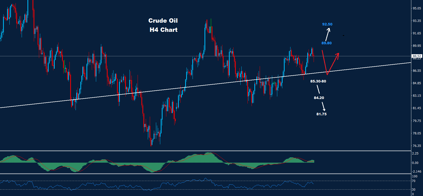 تمكن النفط الخام من اختبار مستوى الدعم 85.80 بينما تمكن من ضرب أسعار تحته قبل التوجه نحو التقدم السريع.