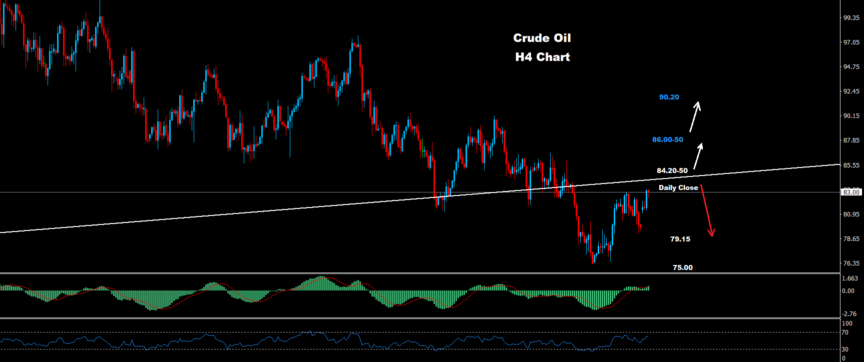طالما استمر السوق في الحفاظ على الإغلاق اليومي دون هذه المستويات 84.50، فقد تعود موجة الاتجاه الهبوطي في أي وقت لاستئناف الانخفاض نحو 75.00 وما دونه.