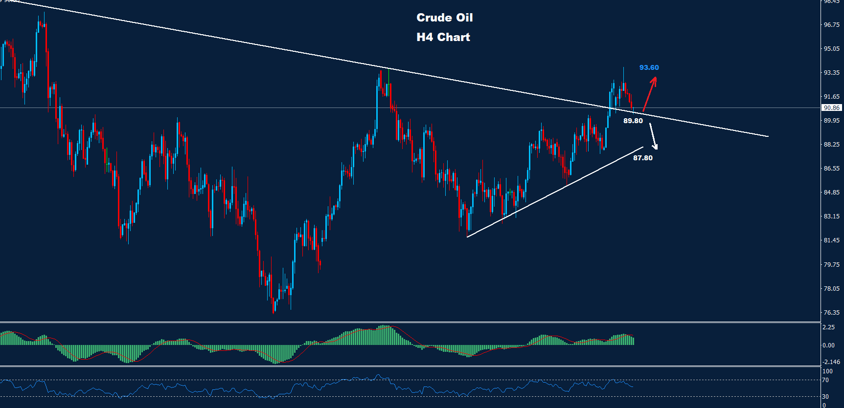 تمكن النفط الخام من استئناف تقدمه حيث تمكن من تحقيق الهدف الثاني 93.60 يوم أمس.
