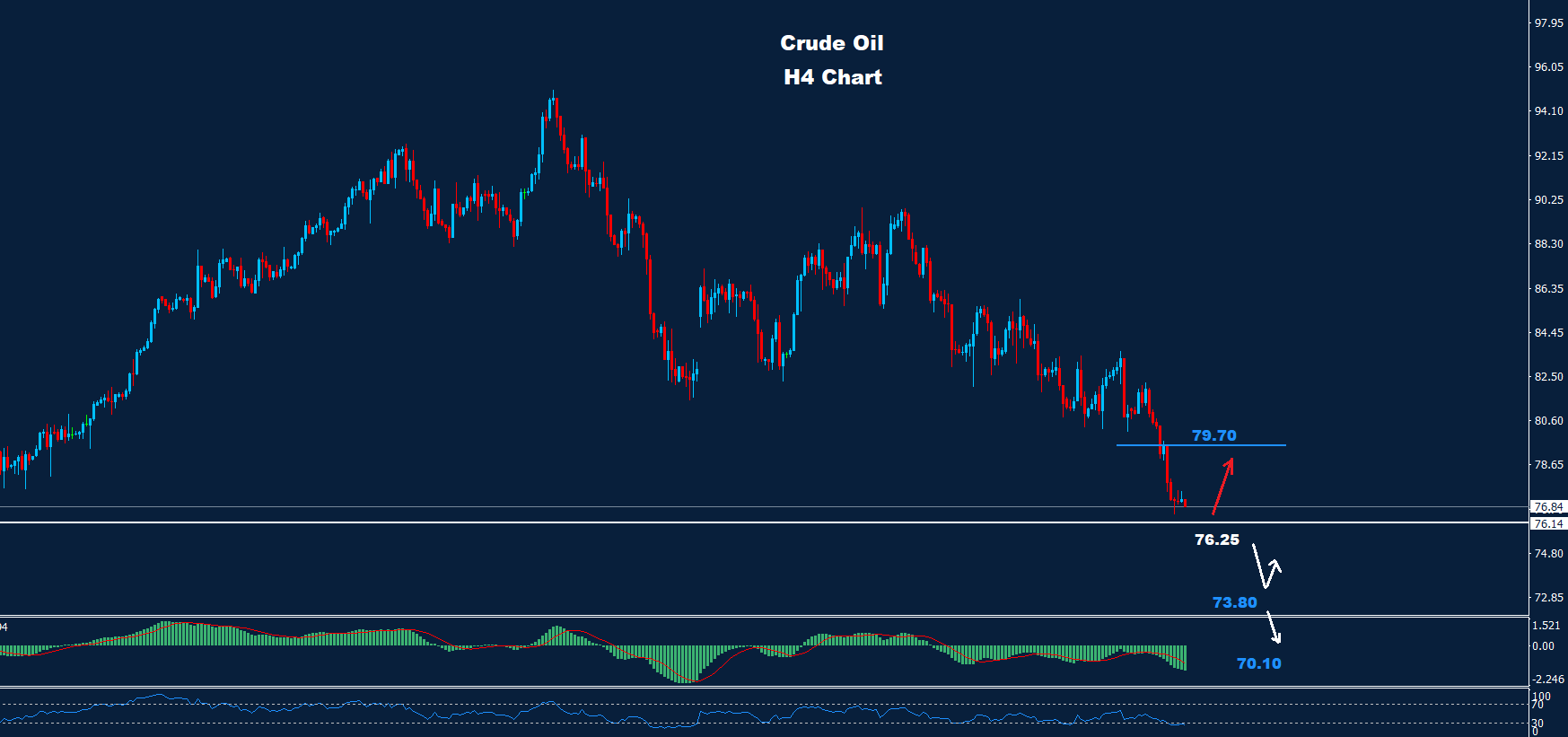 تمكن النفط الخام من الحفاظ على الانخفاض حيث تمكن يوم أمس من تحقيق الهدف 77.60-78.00.