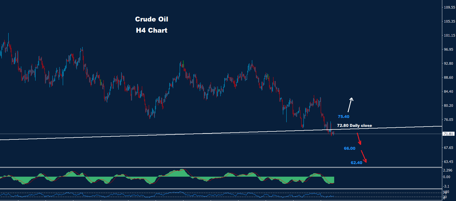 تمكن النفط الخام من الحفاظ على الإغلاق اليومي دون المقاومة 72.80 التي لا تزال تحتفظ بضغط الاتجاه الهبوطي على السوق.