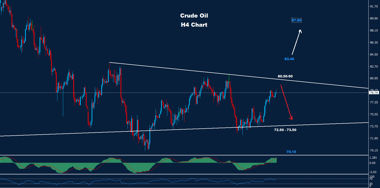 تمكن النفط الخام من الحفاظ على دعمنا كما نصحنا في الأسابيع القليلة الماضية حيث تمكن من الارتداد نحو 79.25 حتى الآن.