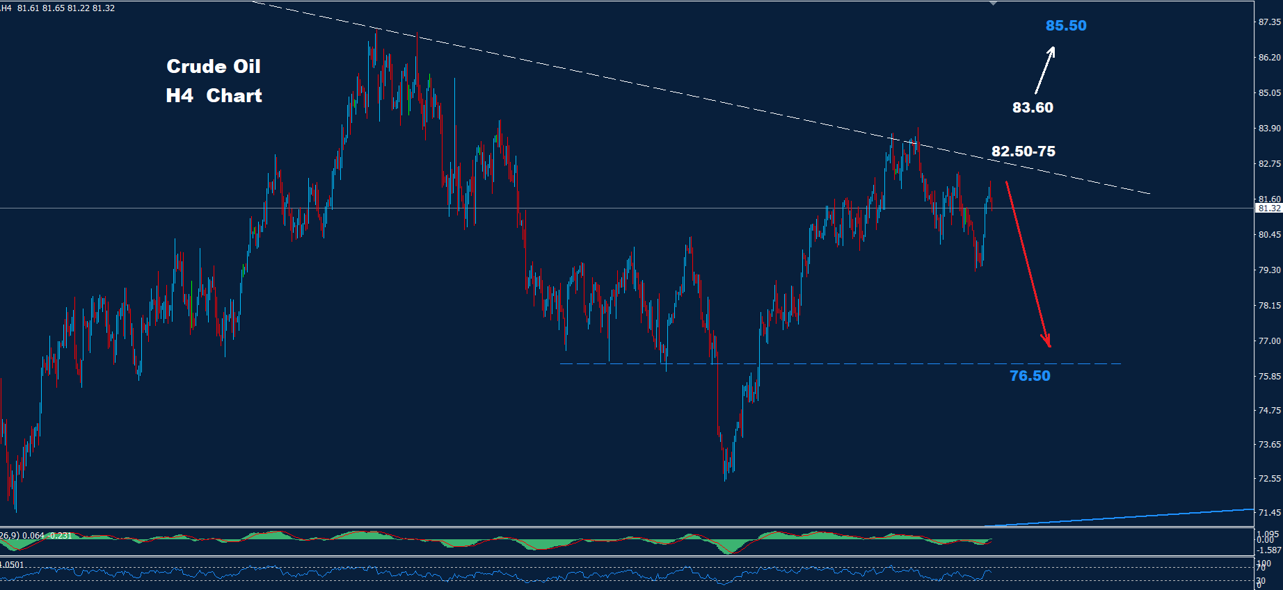 تمكن السوق من تحقيق الهدف الأول عند منطقة 79.25-80.00 بينما لا يزال المزيد من الانخفاض مستمرًا حيث لا يزال الهدف الثاني عند منطقة 77.50 و 76.00