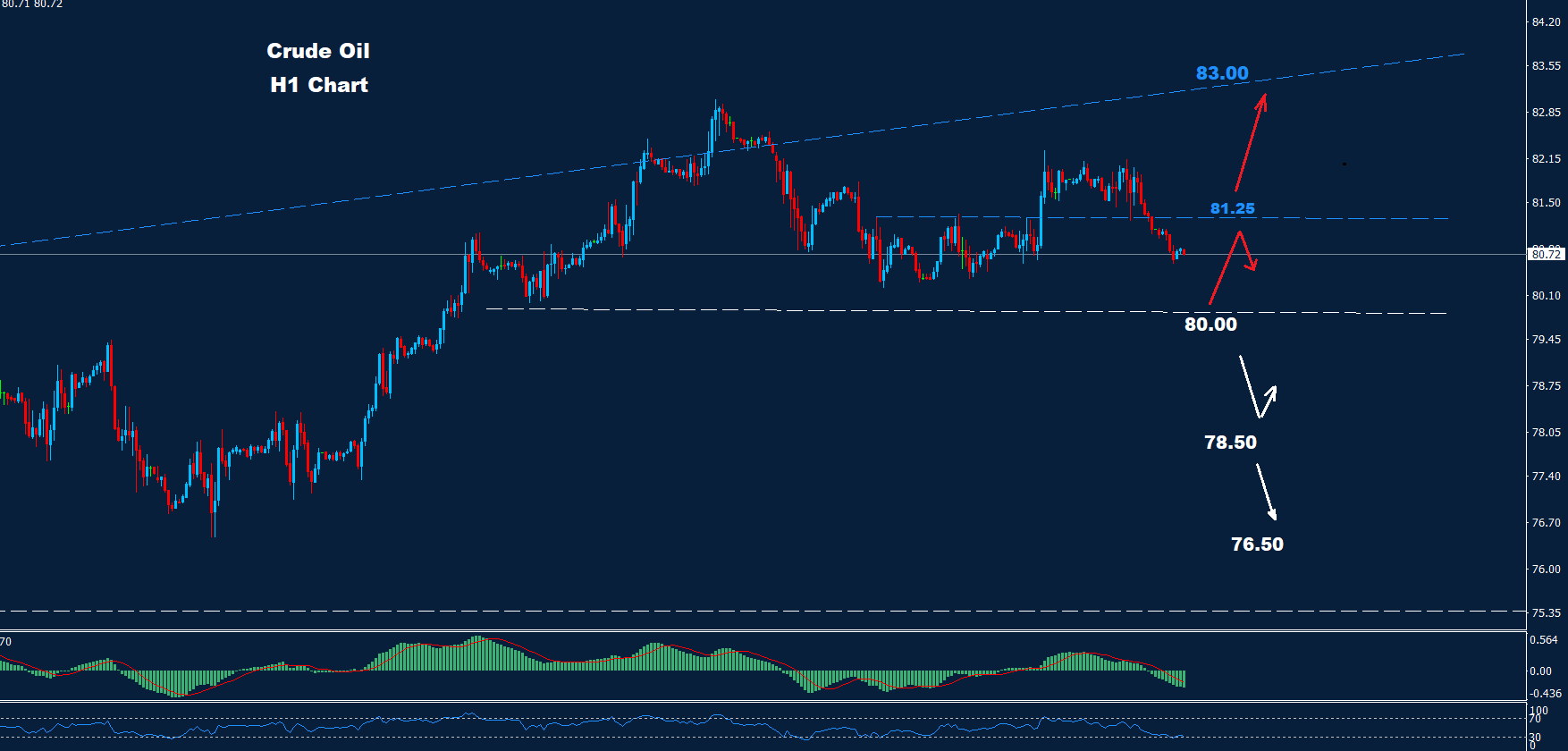 تمكن السوق من الحفاظ على التداولات فوق الدعم 80.00 حيث تمكن من تحقيق تقدم آخر وكسر فوق المقاومة 81.25