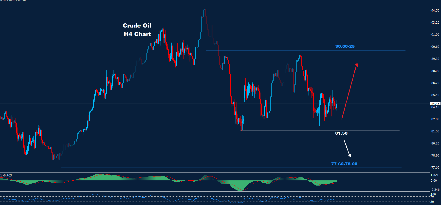كما نرى على الرسم البياني وطالما استمر السوق في الحفاظ على التداولات فوق الدعم 81.50، فمن المتوقع حدوث تصحيح ارتدادي آخر نحو 88.25 وما فوق.